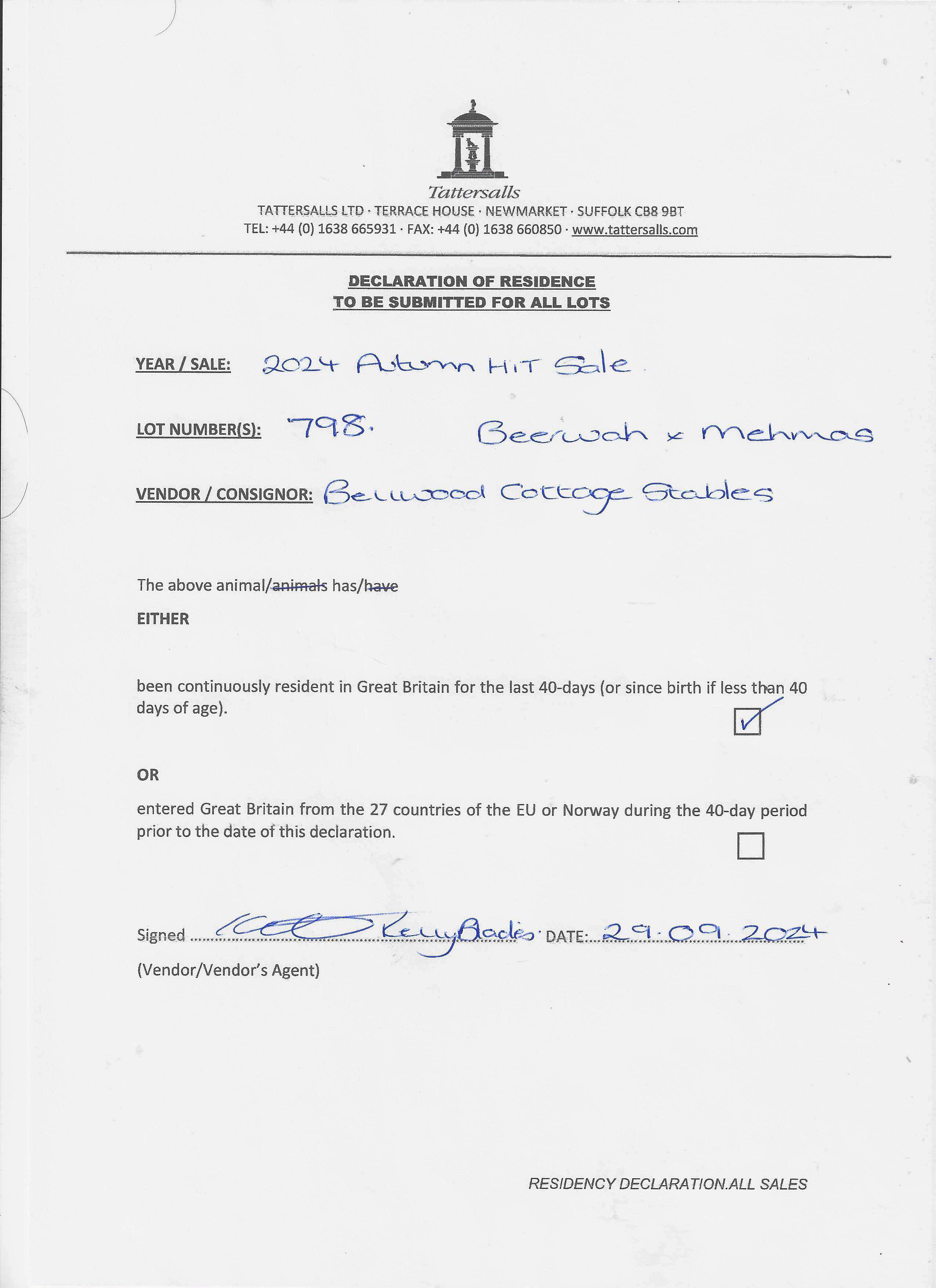 Somerville Yearling Sale 2025 lot 218 F. by State of Rest (IRE) 2024, Rathbarry Stud, Ireland=>Habton Racing 8,000 gns
