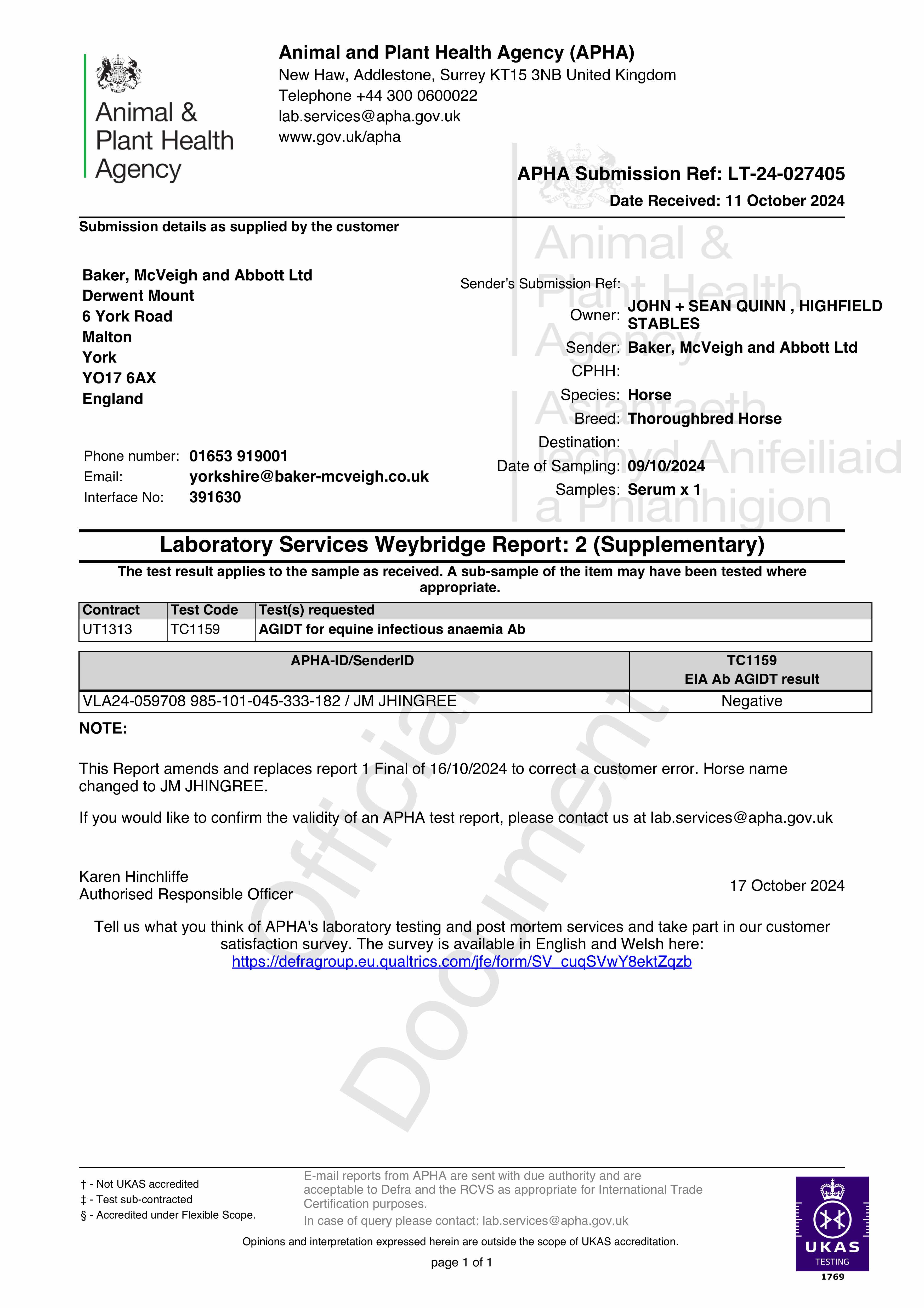 Consignor: Bellwood Cottage Stables (J. & S. Quinn)