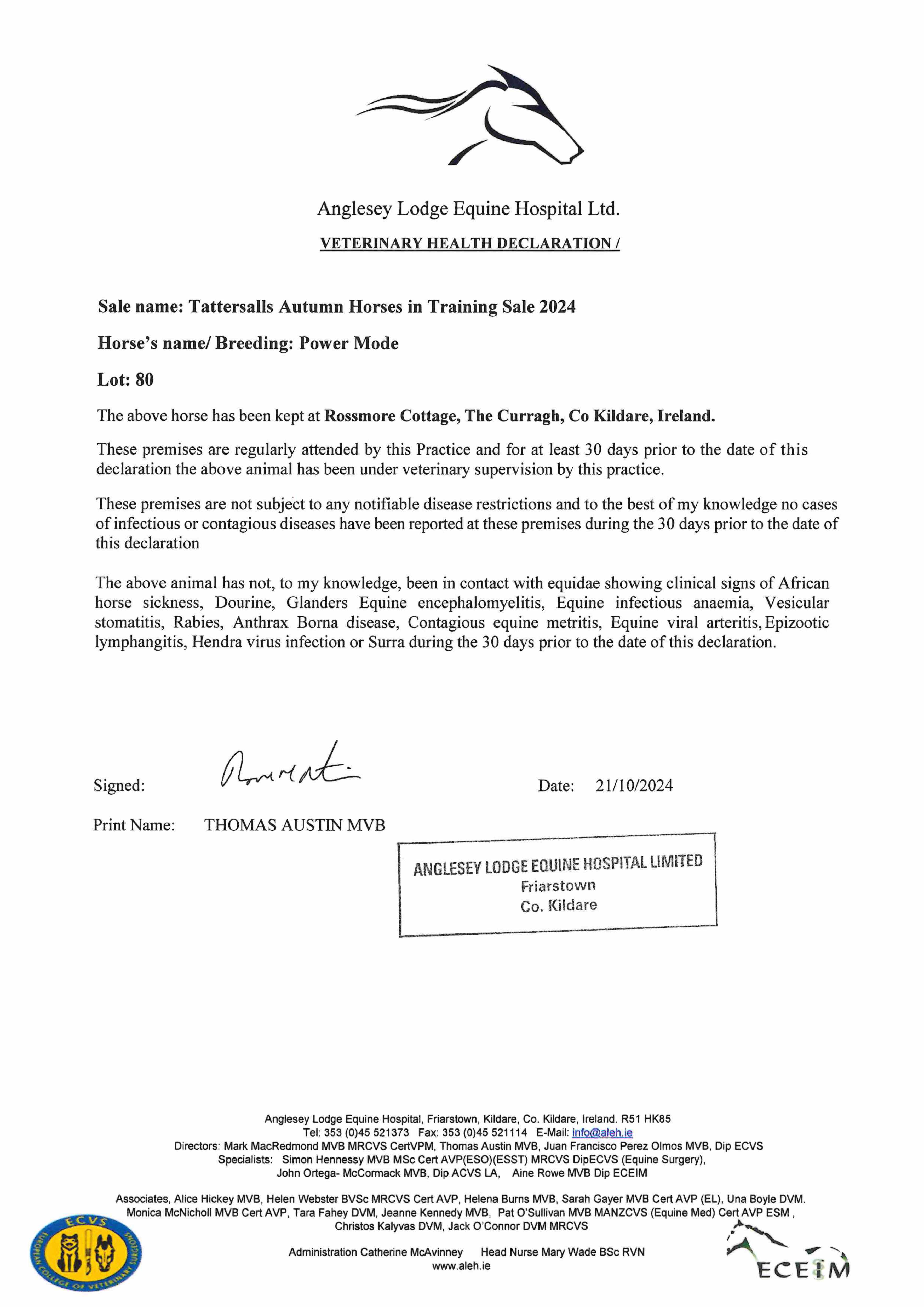 Consignor: Rossmore Cottage Stables, Ireland (D. Murphy)