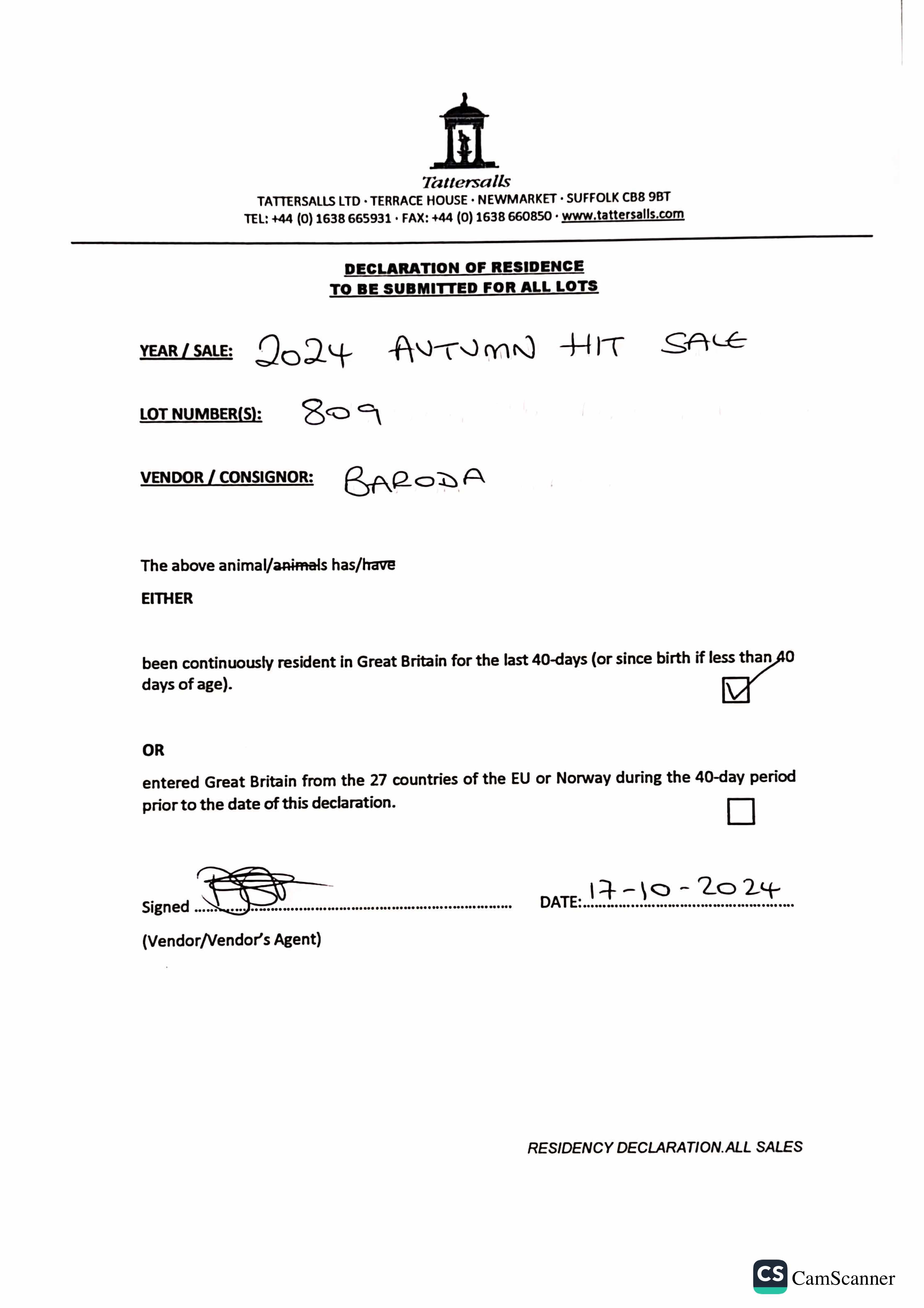 Consignor: Baroda Stud, Ireland