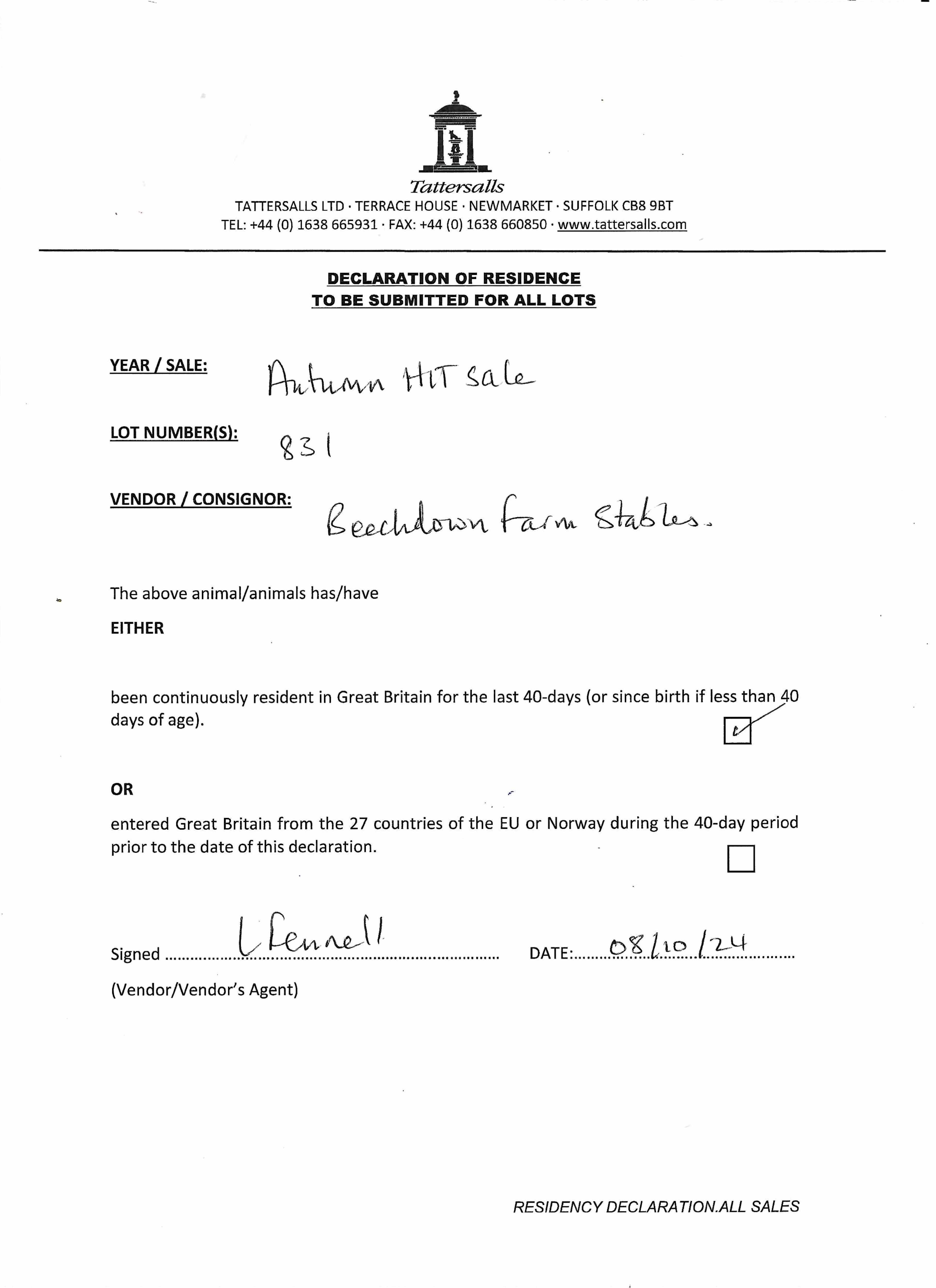 Consignor: Beechdown Farm Stables (C. Cox)