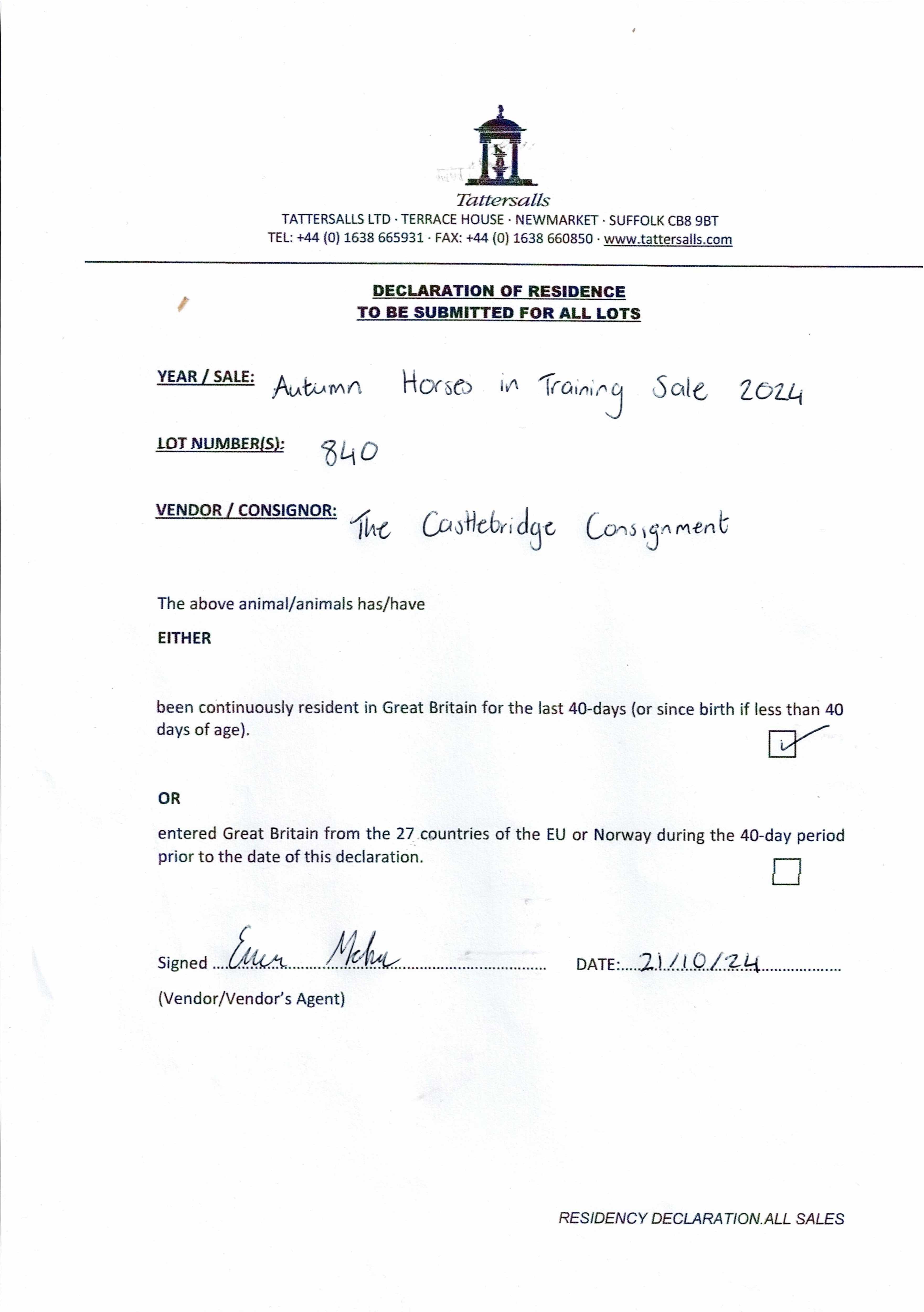 Consignor: The Castlebridge Consignment