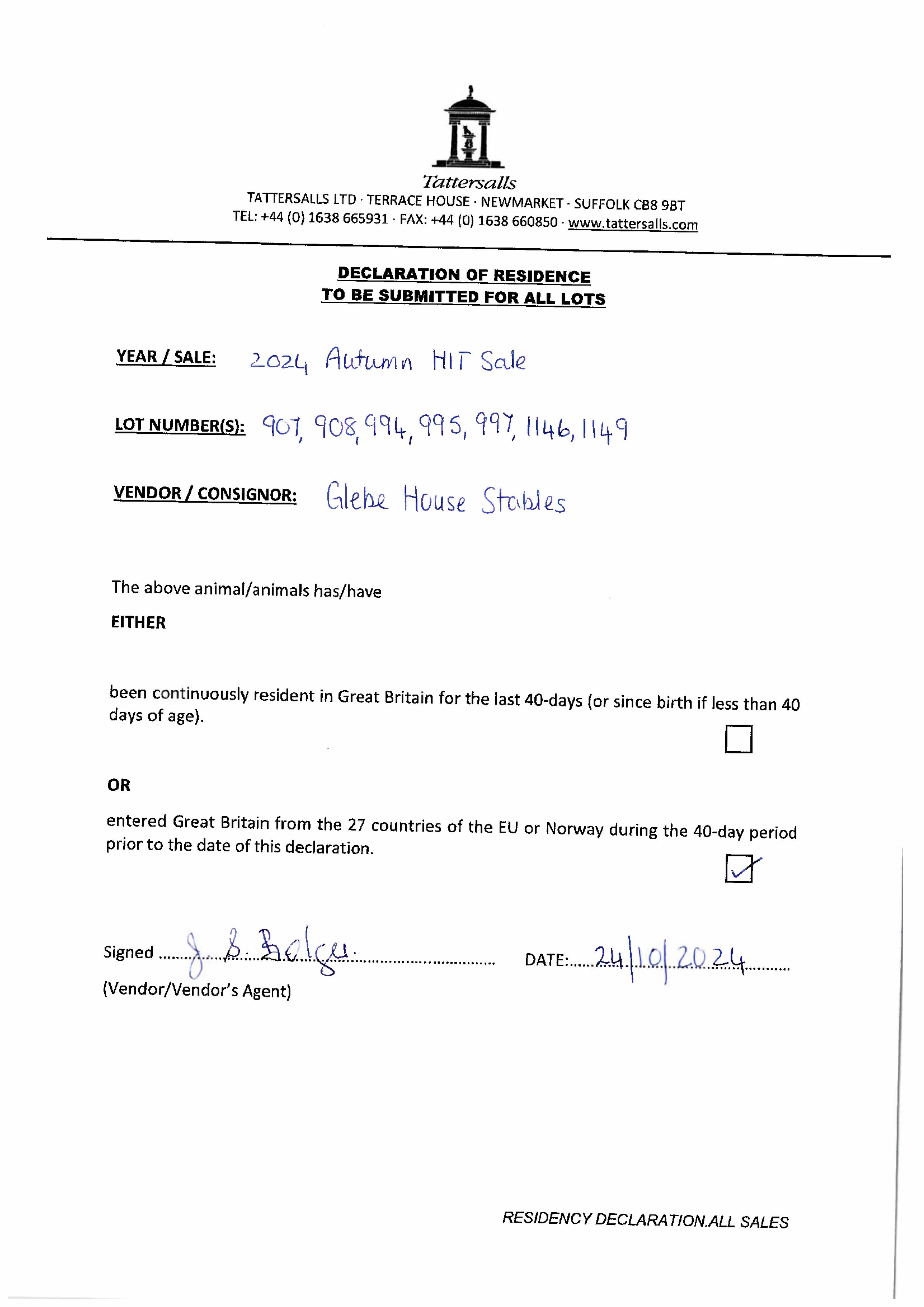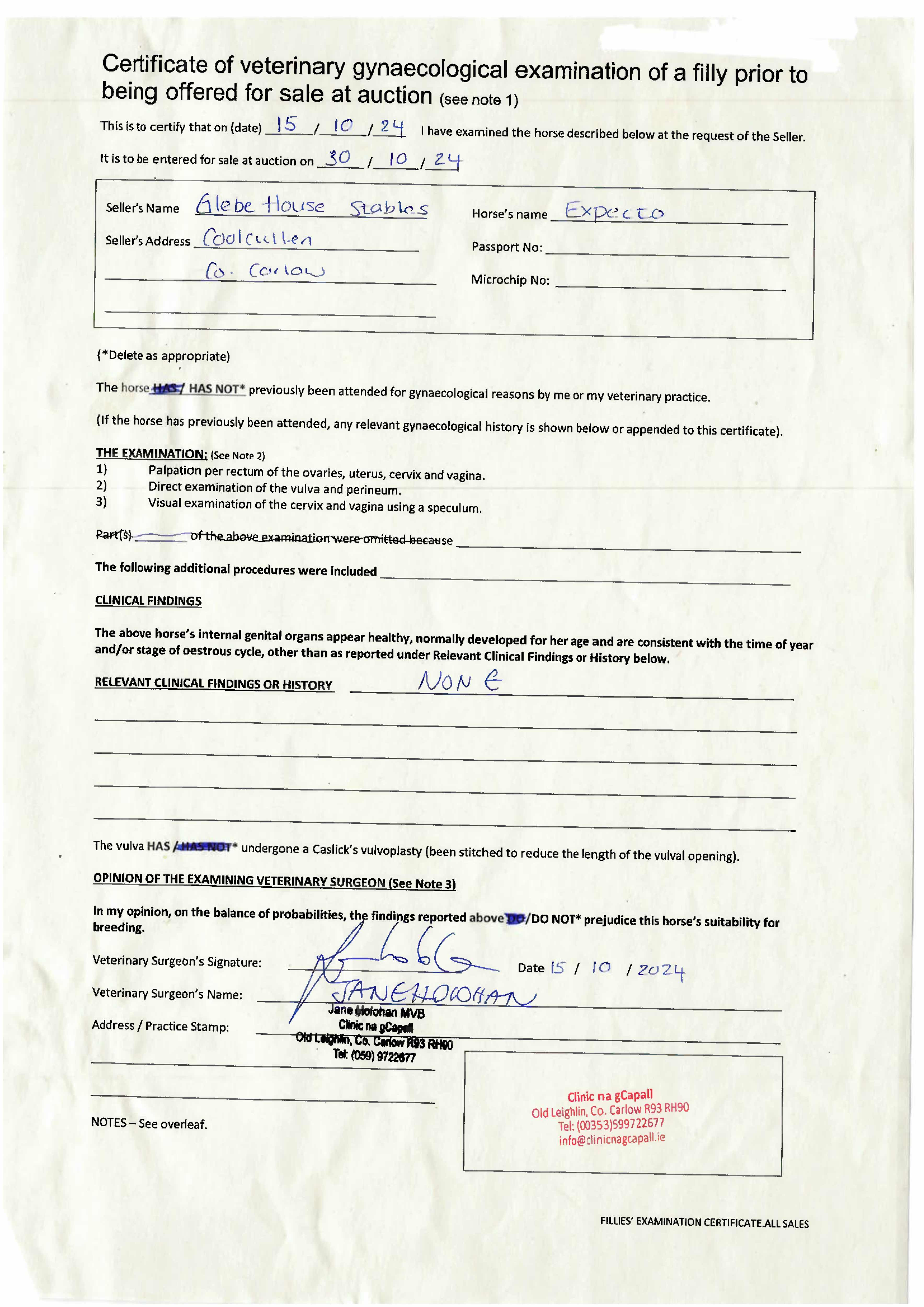 Consignor: Glebe House Stables, Ireland (J. S. Bolger)