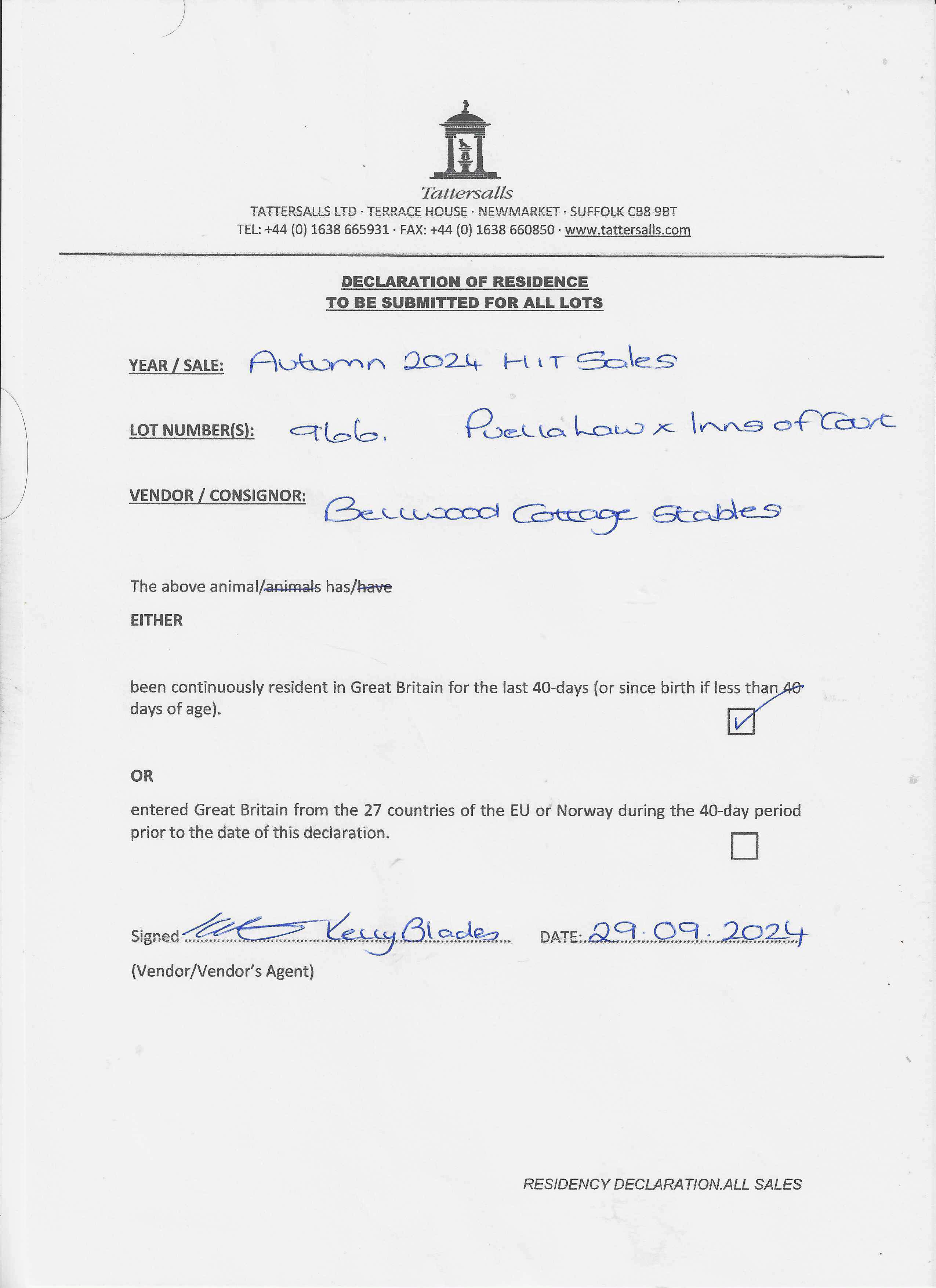 Consignor: Bellwood Cottage Stables (J. & S. Quinn)
