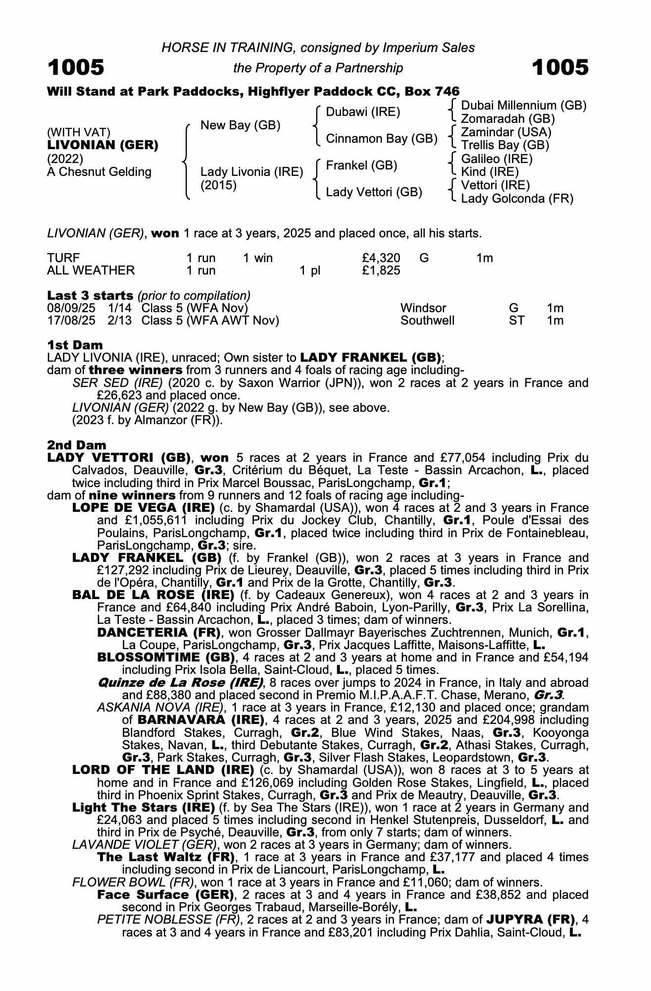 LIVONIAN (GER), won 1 race at 3 years, 2025 and placed twice, from only 4 starts.