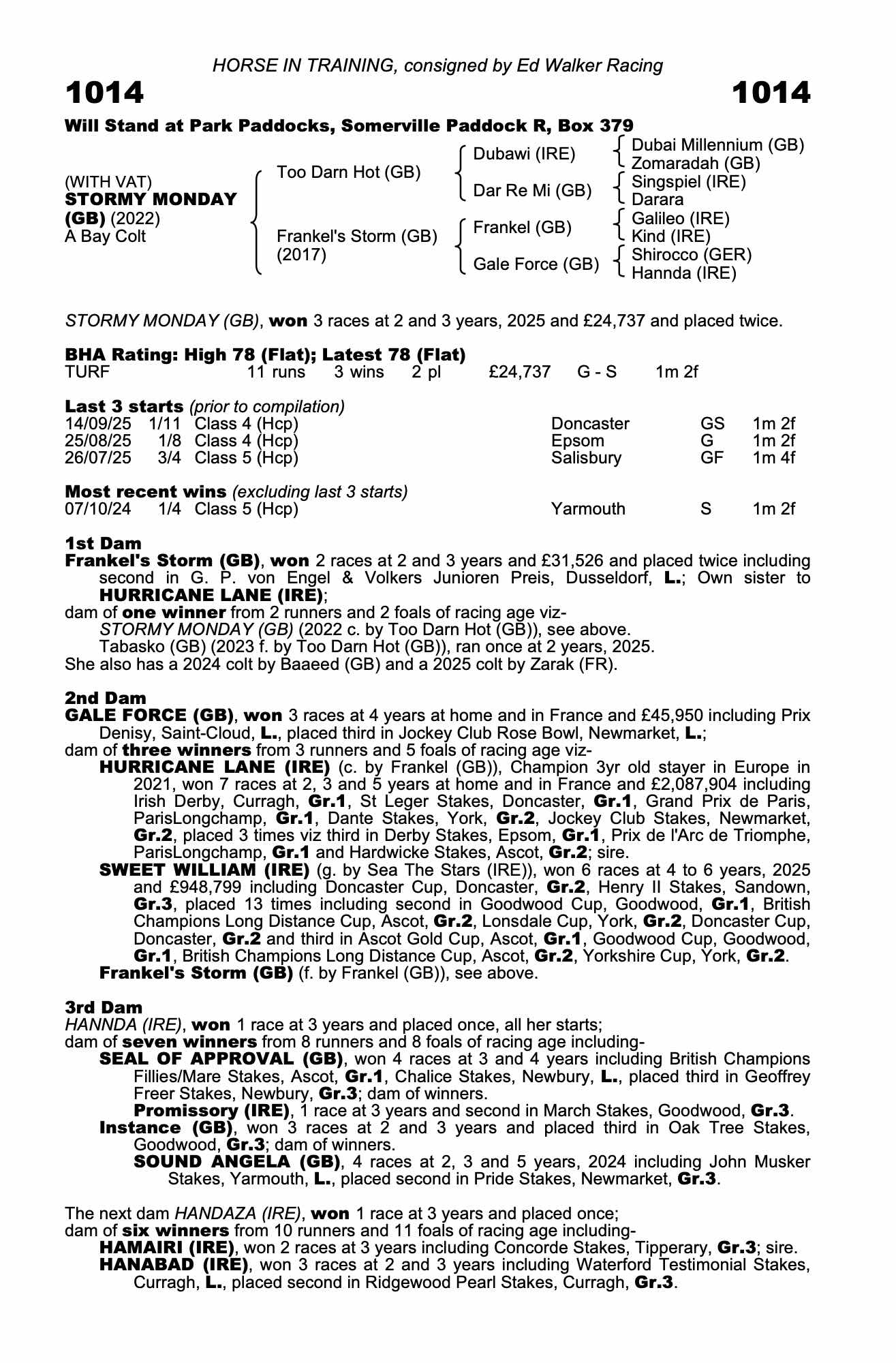 Own sister: Tabasko (GB) (2023 f. by Too Darn Hot (GB)), placed once at 2 years, 2025, from only 2 starts.
