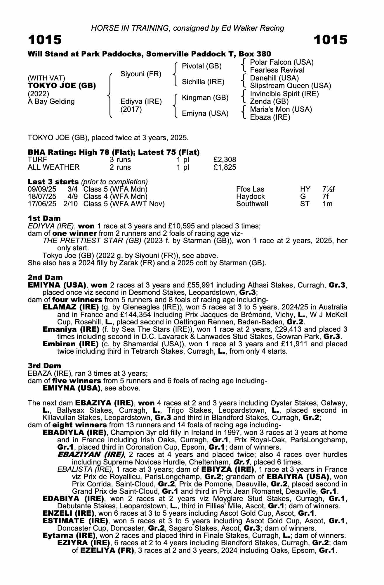 (2023 f. by Starman (GB)), placed once and £25,225 viz second in Rockfel Stakes, Newmarket,