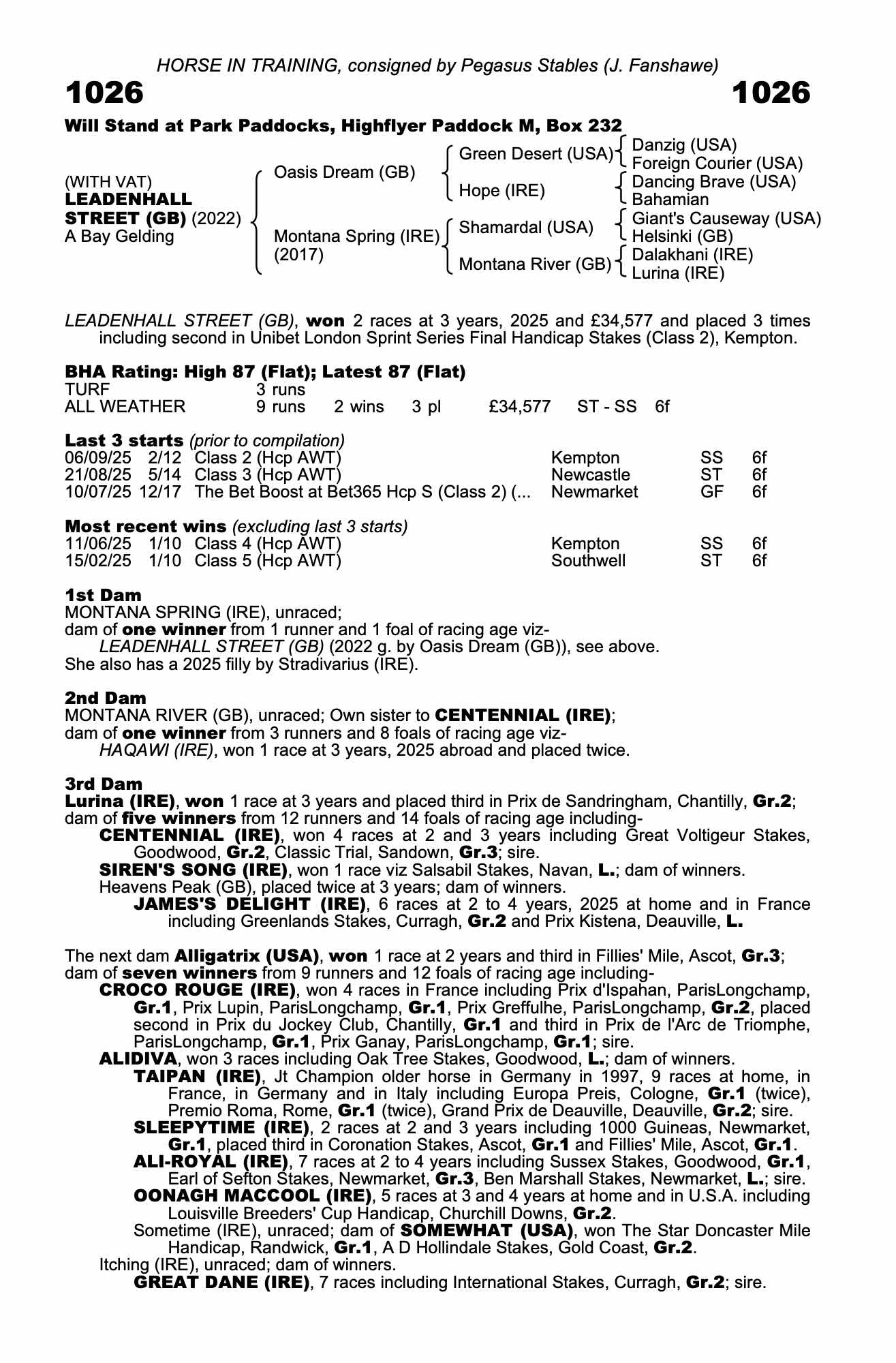 Consignor: Pegasus Stables (J. Fanshawe)
