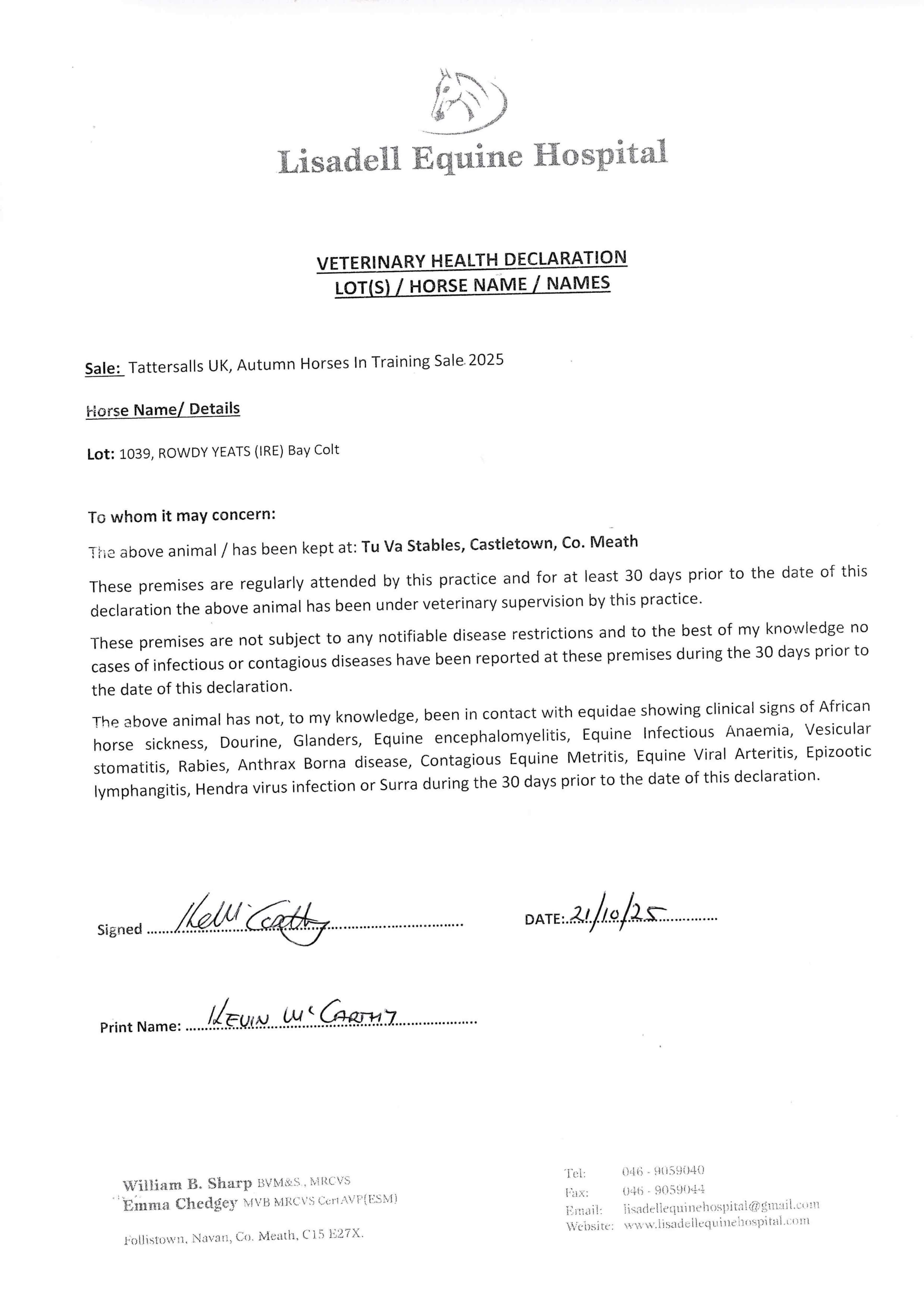Consignor: Tu Va Stables, Ireland (N. Meade)