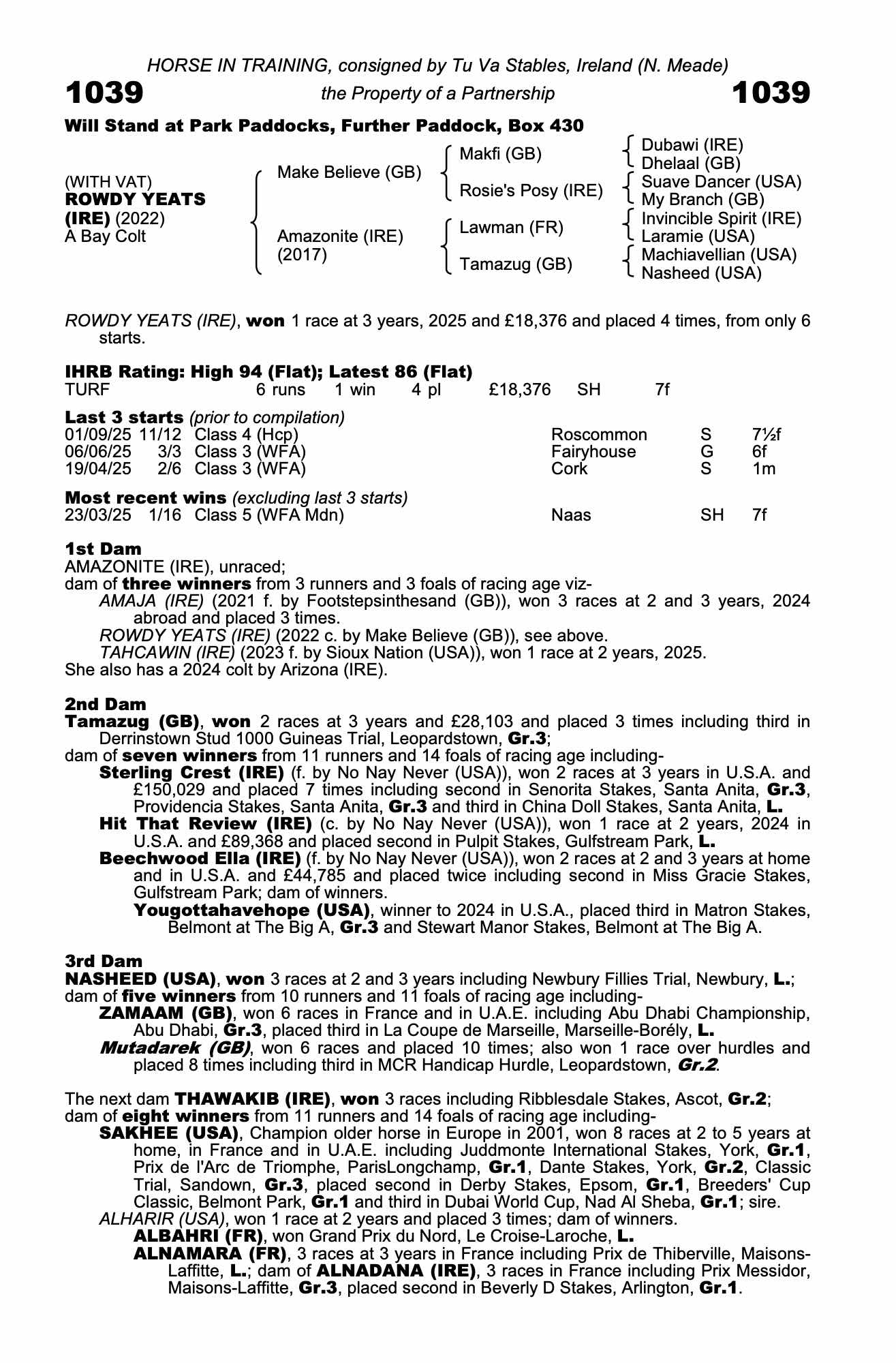 IHRB Rating: High 94 (Flat); Latest 89 (Flat)27/09/25 – 1st of 7 in 7f Class 2 (WFA), Curragh (S)