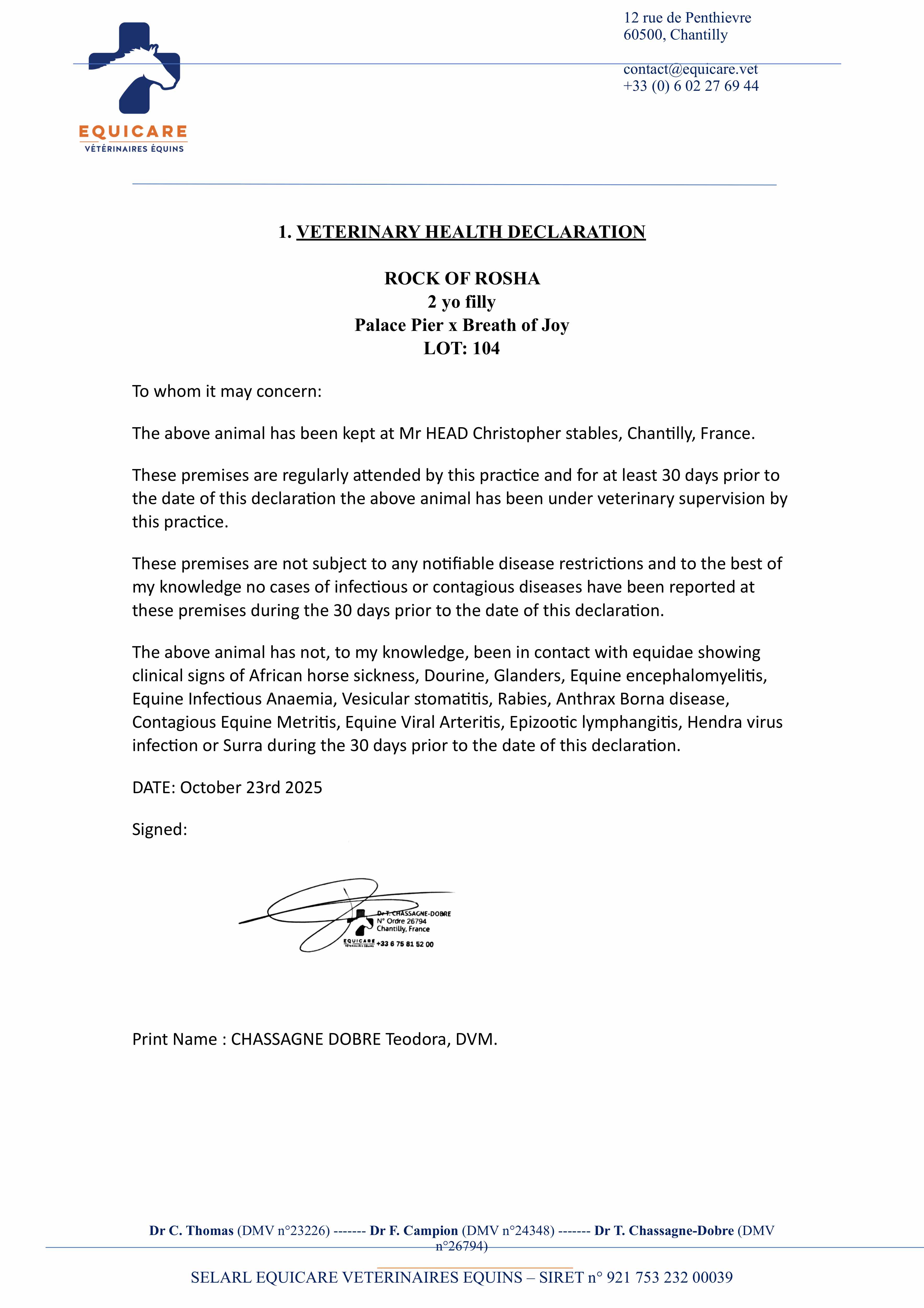 Health Certificate