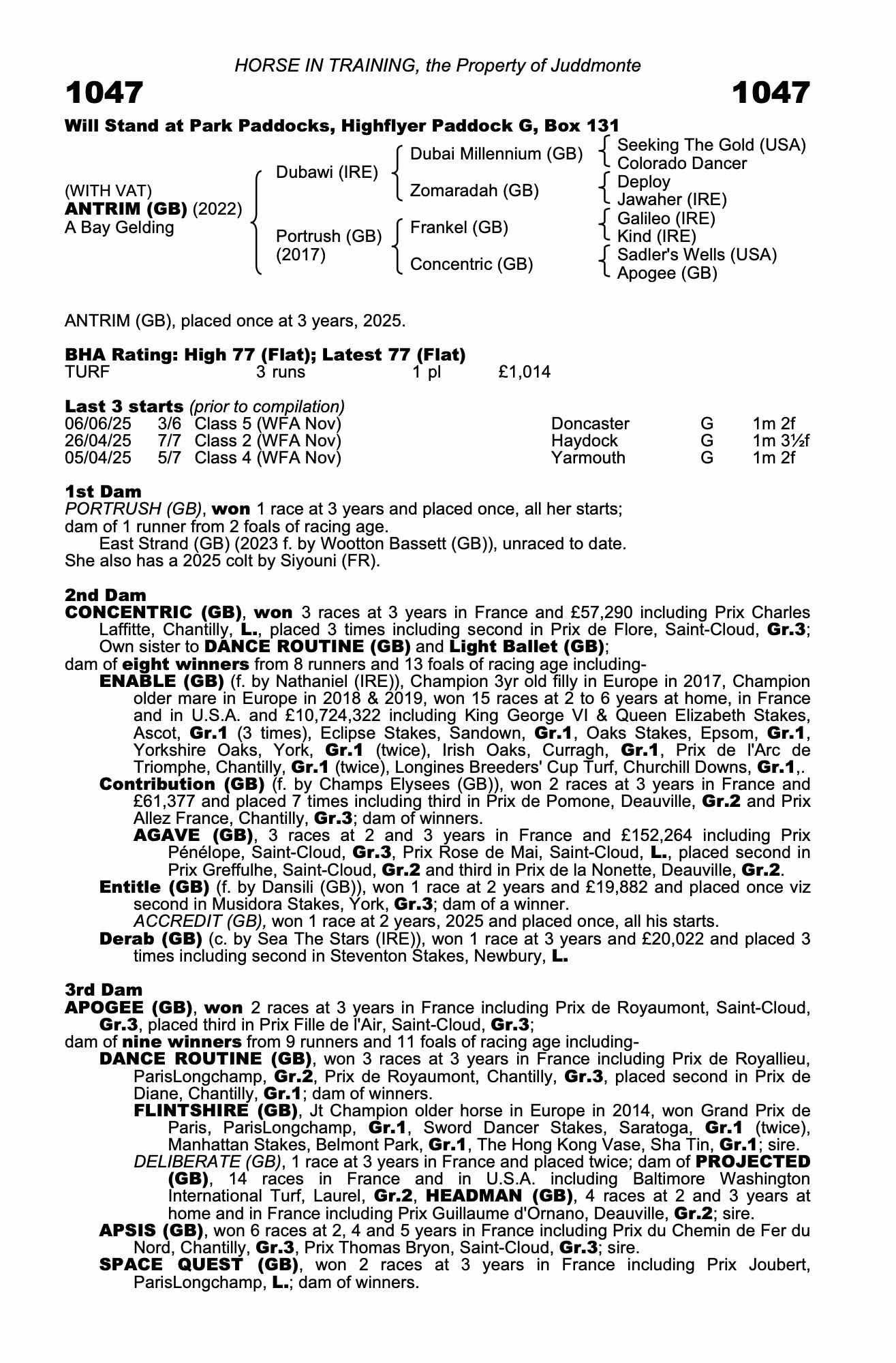 BHA Rating: High 82 (Flat); Latest 82 (Flat)14/10/25 – 1st of 8 in 1m 2f Class 5 (WFA AWT Nov), Newcastle (ST)