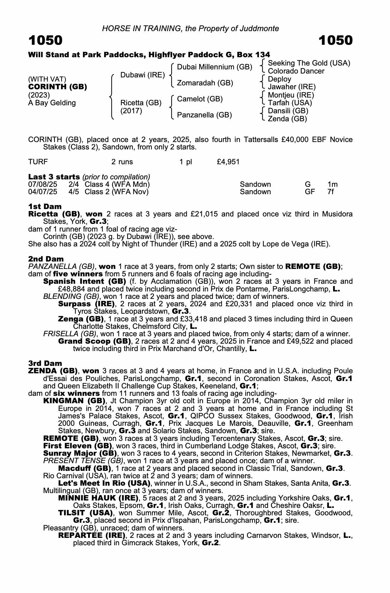 BHA Rating: High 83 (Flat); Latest 83 (Flat)02/10/25 – 1st of 7 in 1m Class 5 (WFA AWT Mdn), Newcastle (ST)