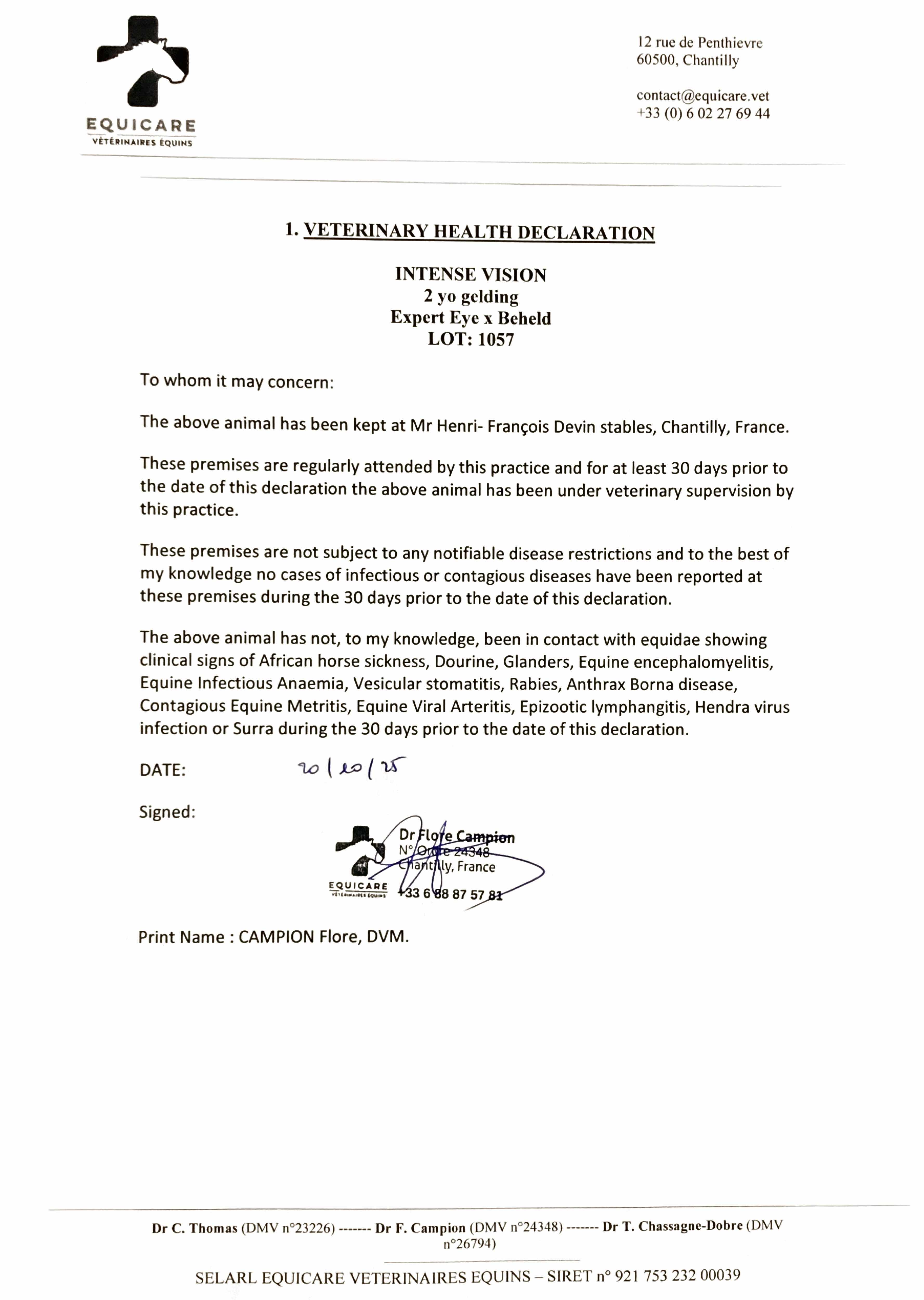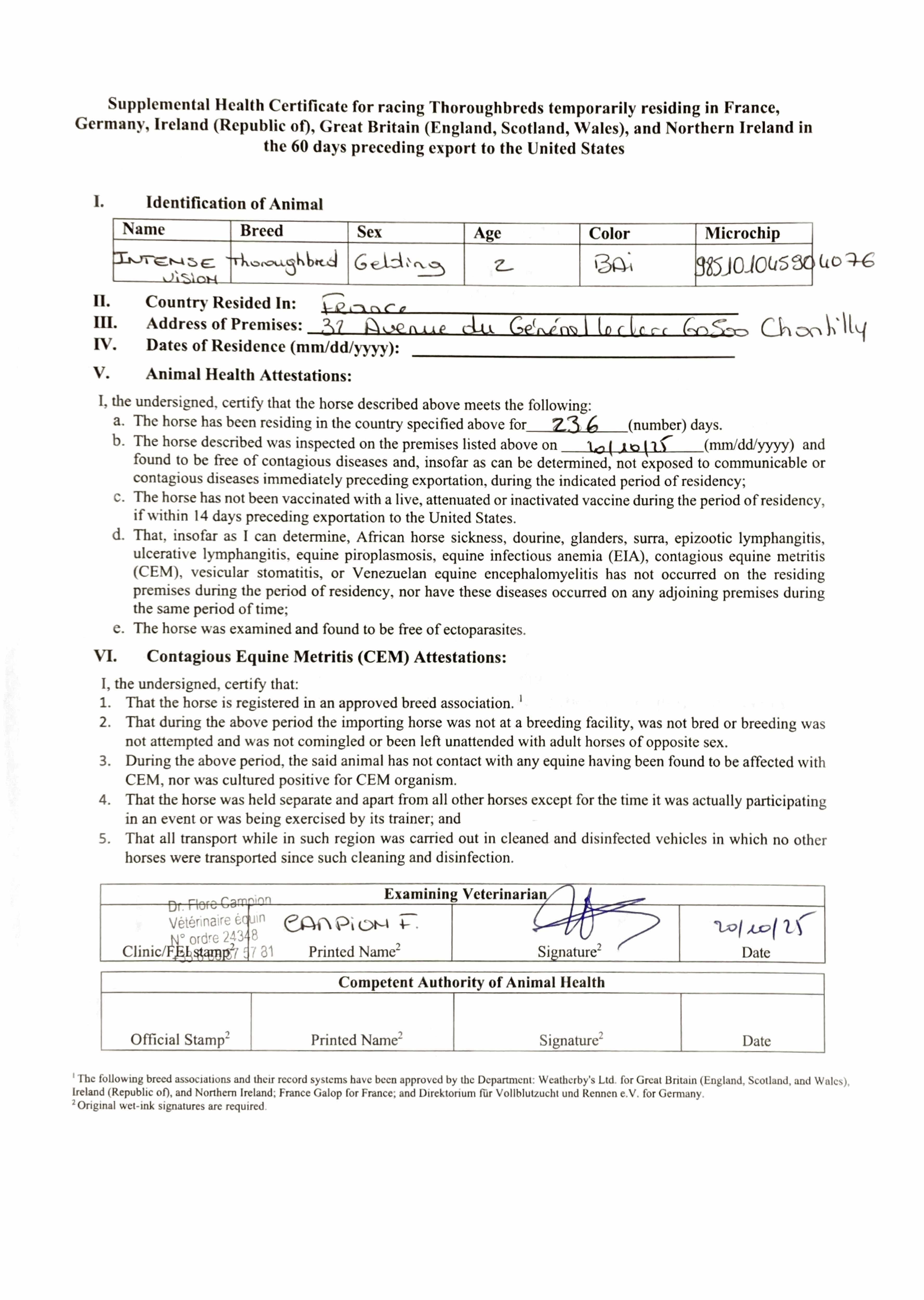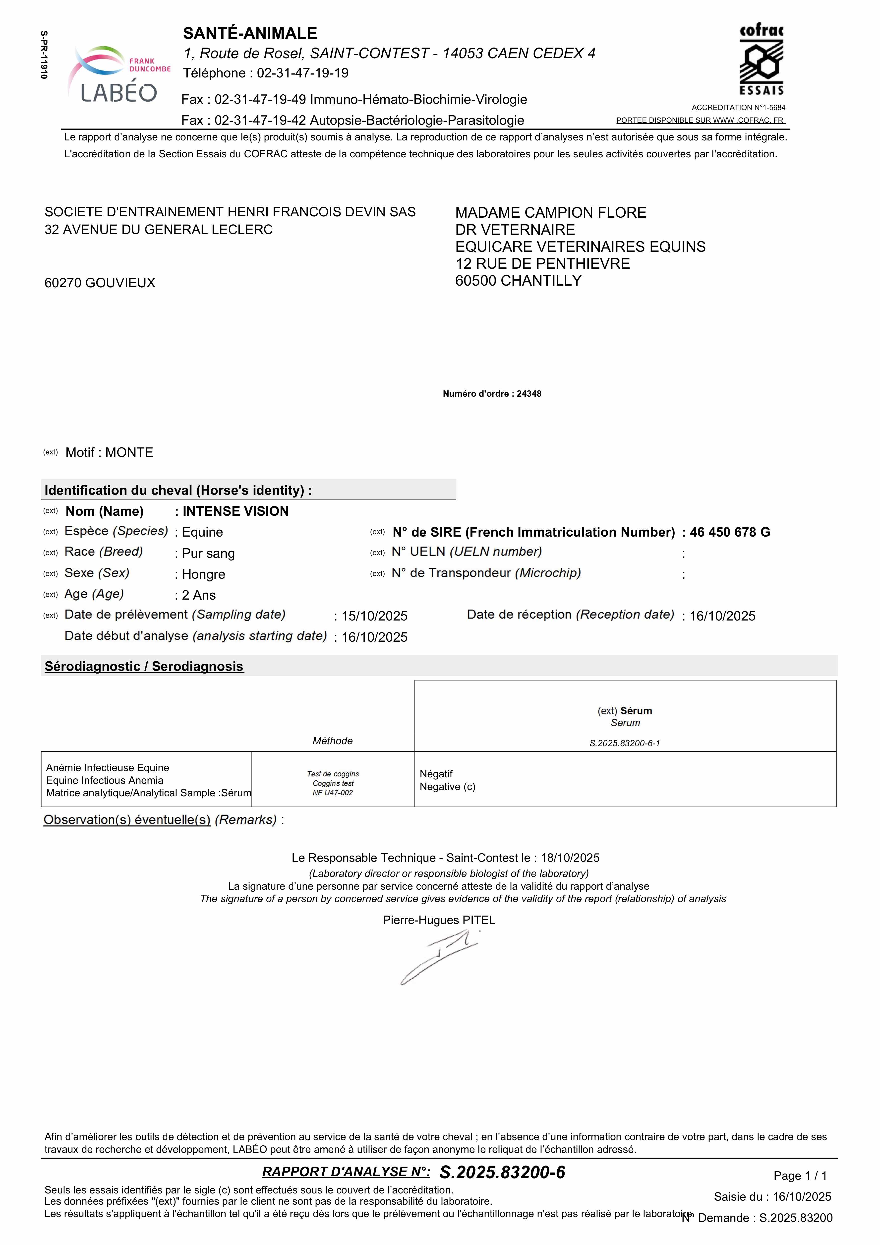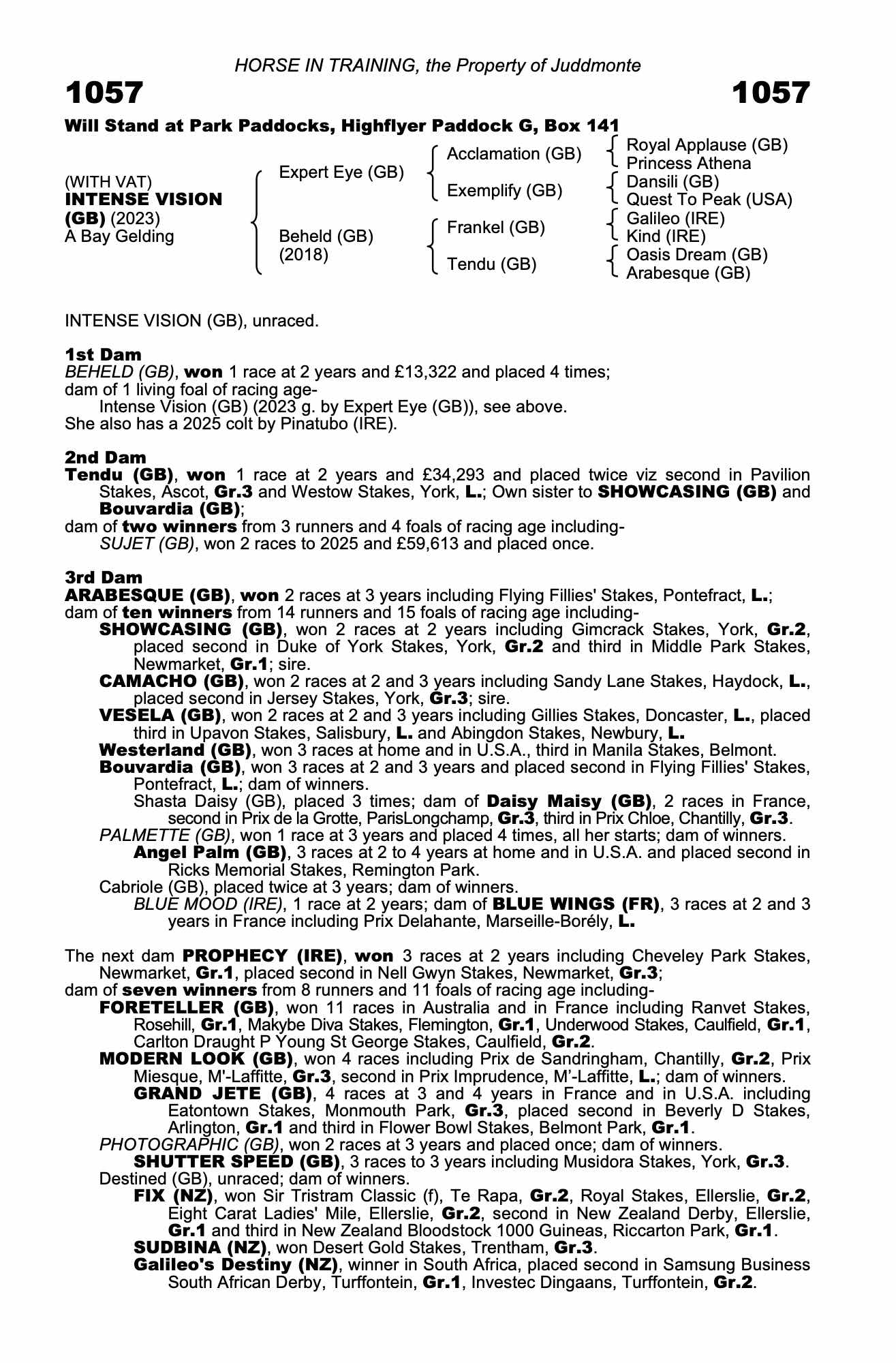 INTENSE VISION (GB), won 1 race at 2 years, 2025 in France, his only start.