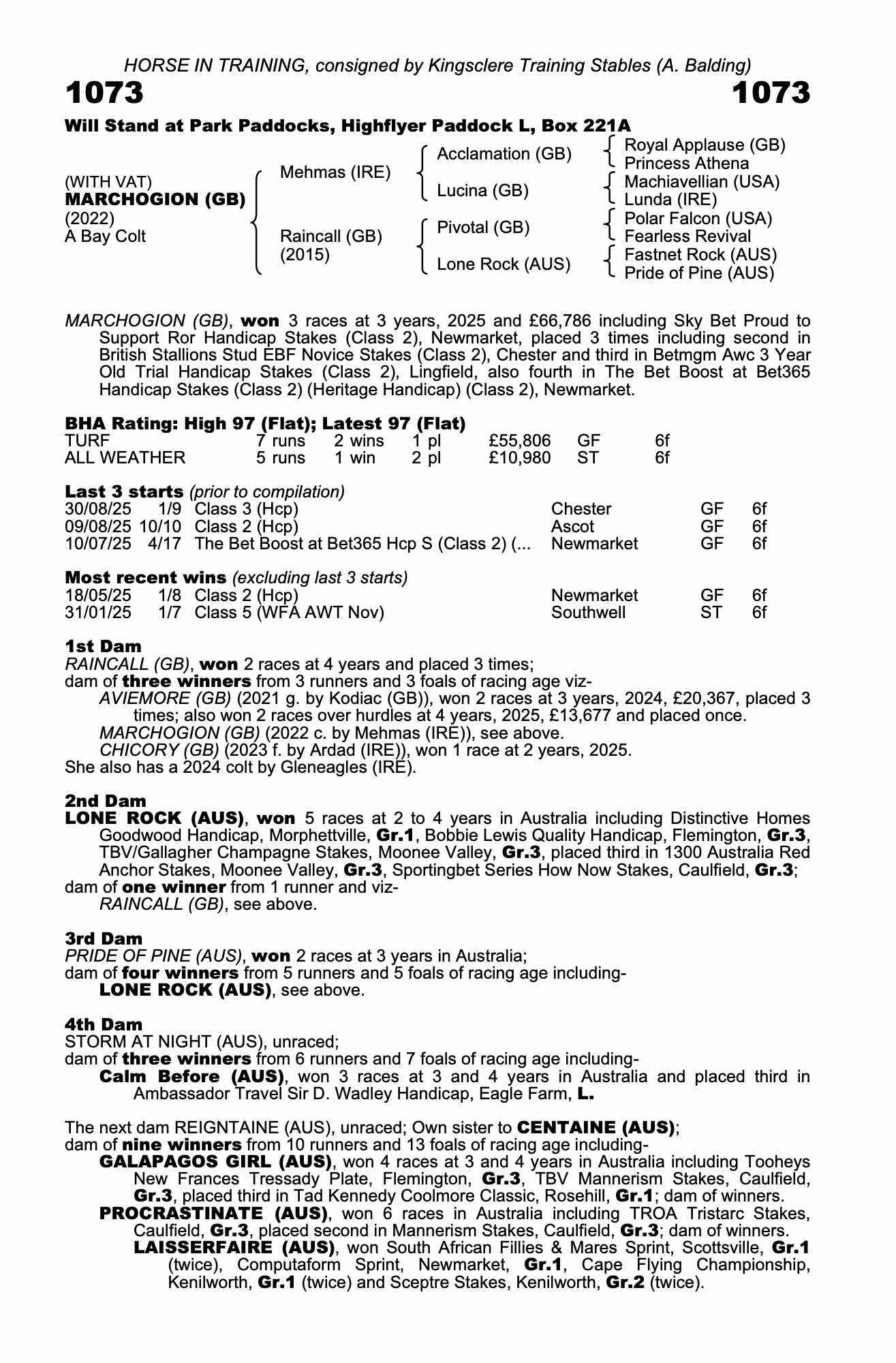 Online Sale - 17th September 2025 lot 71, Kingsclere Training Stables (A. Balding)=>Lot Not Sold 185,000 gns