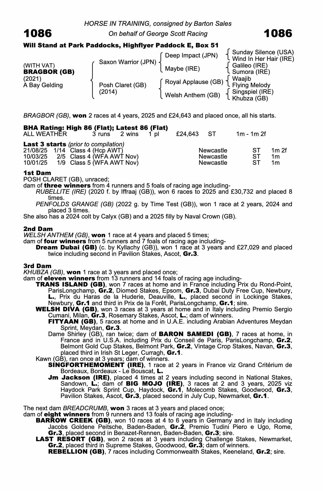 Online Sale - 13th August 2025 lot 75 Penfolds Grange (GB) (G. by Time Test (GB)), Park Lodge Stables (H. Eustace)=>Mark Pattinson 10,500 gns
