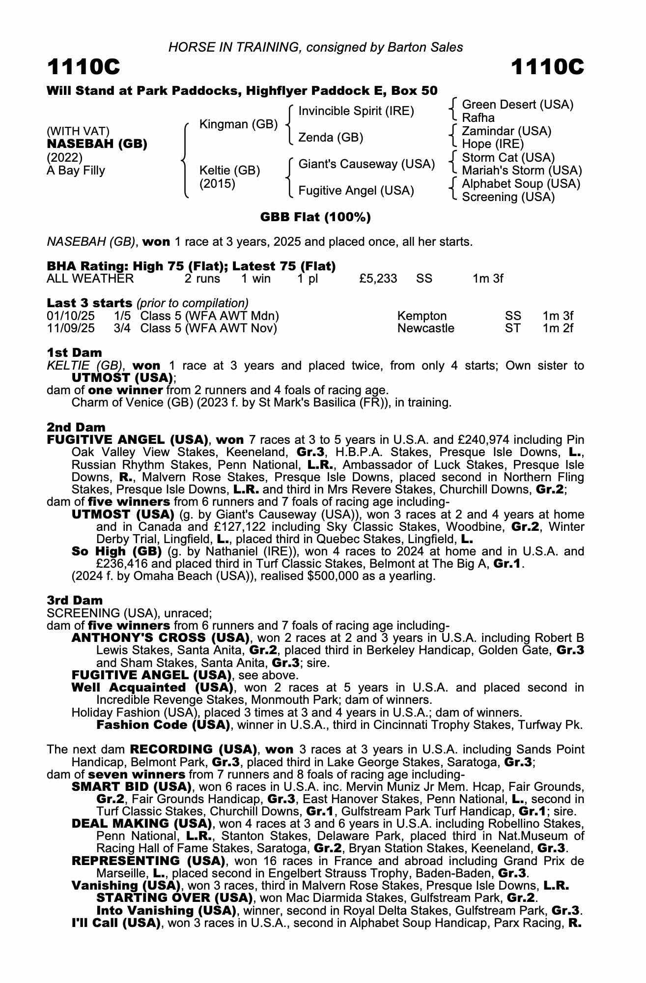 December Yearling Sale 2024 lot 99 F. by St Mark's Basilica (FR) 2023, Barton Stud=>Andrew Oliver 25,000 gns