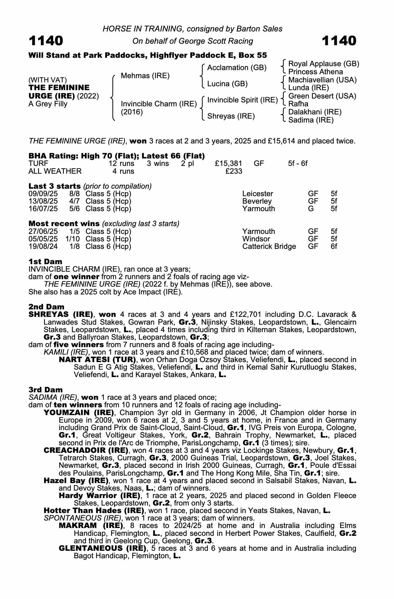 Somerville Yearling Sale 2023 lot 170, Manister House Stud, Ireland=>George Scott Racing 55,000 gns