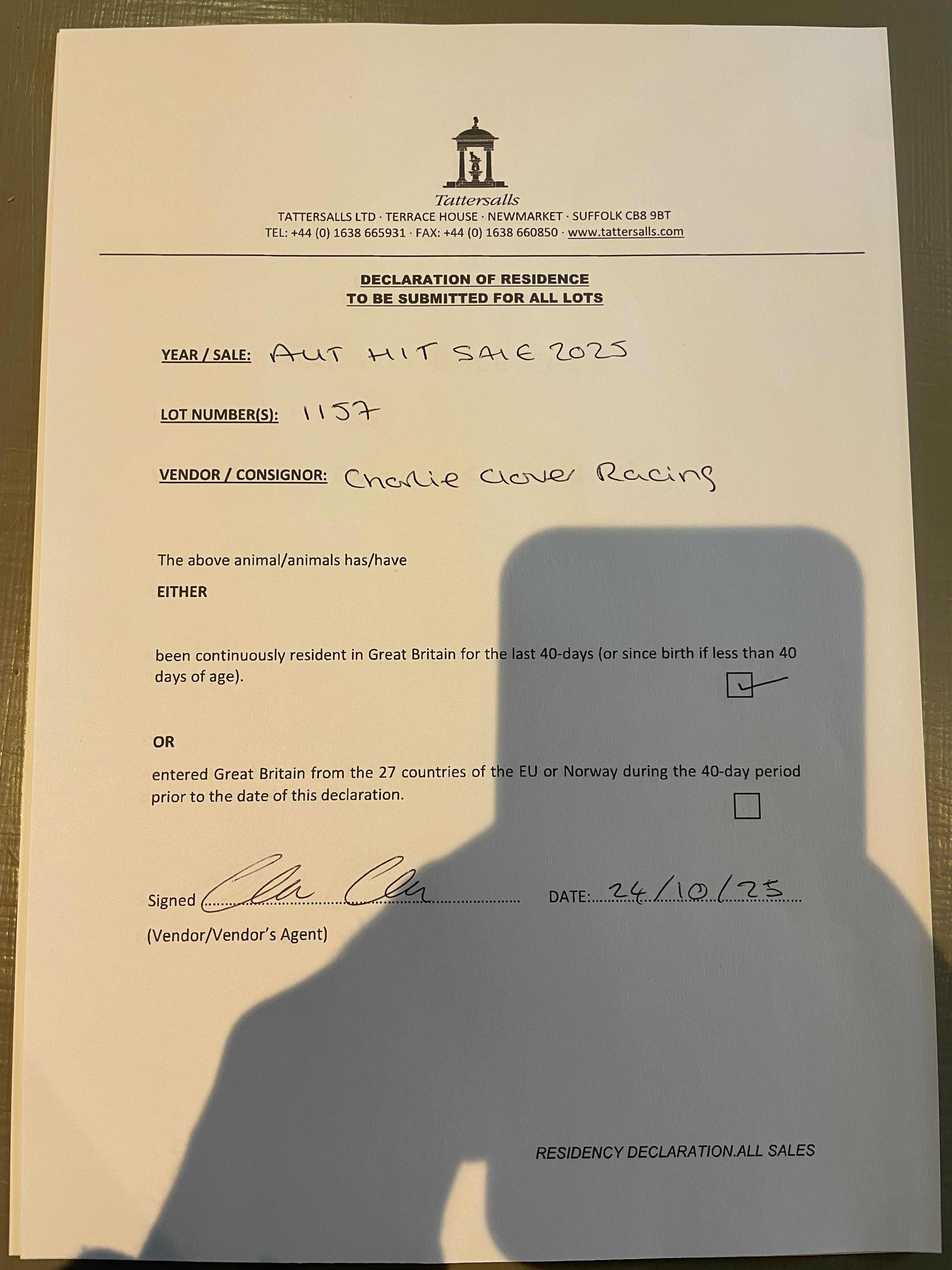 December Foal Sale 2025 lot 1097 F. by Bated Breath (GB) 2025, Far Westfield Farm=>Alder Design & Build 1,000 gns