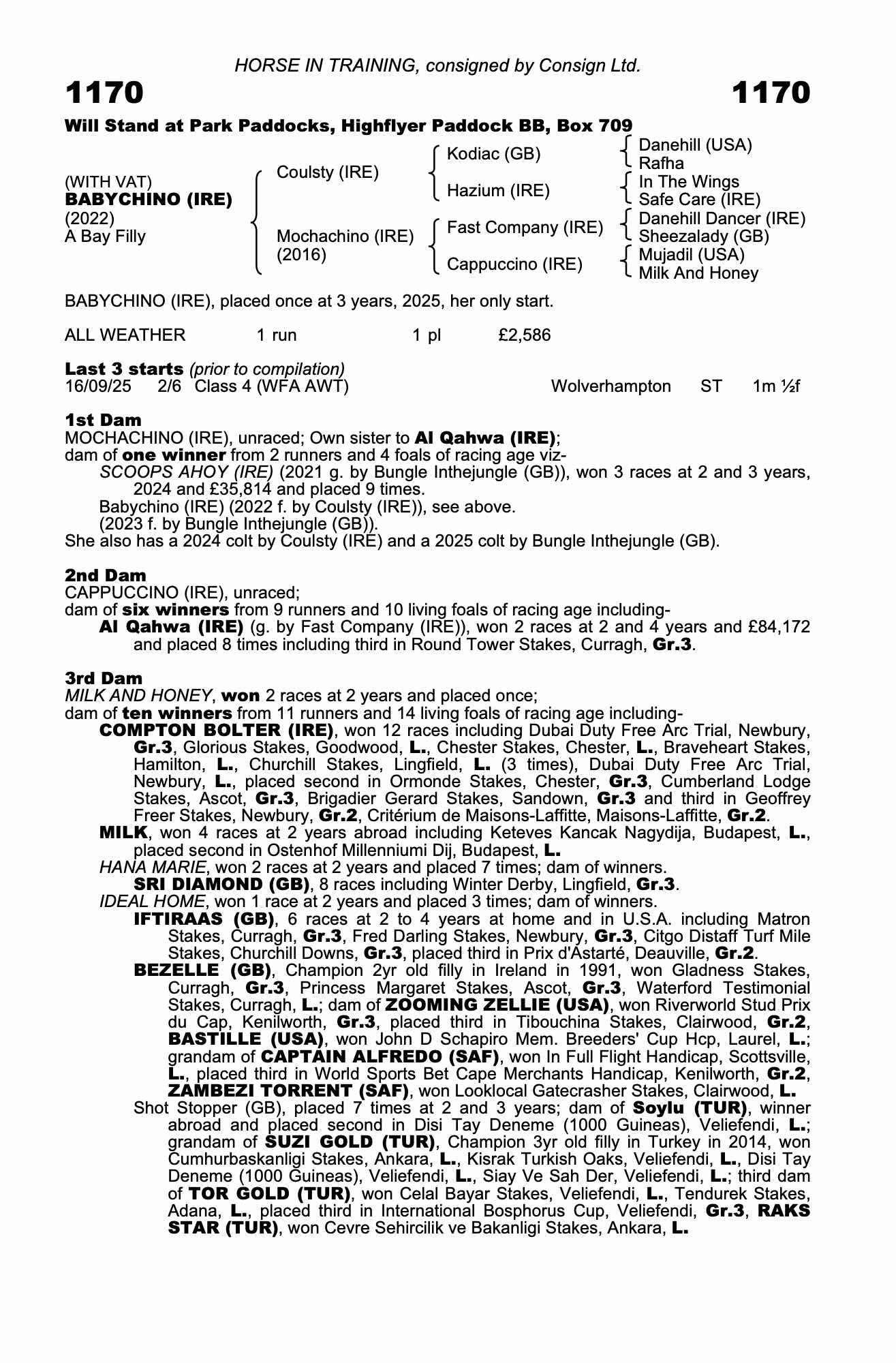 Autumn Horses In Training Sale 2024 lot 222 Scoops Ahoy (IRE) (G. by Bungle Inthejungle (GB)), Baroda Stud, Ireland=>Saud MEM Alajmi 8,500 gns