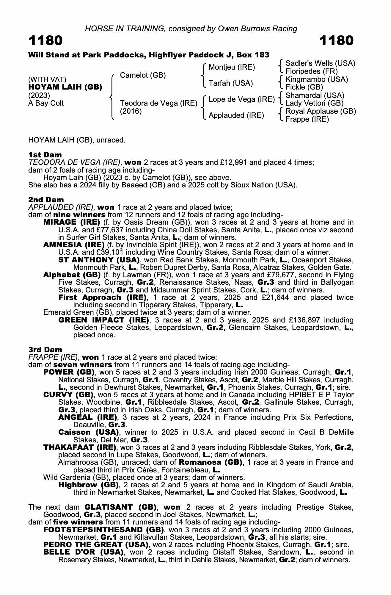 October Yearling Sale, Book 2 2024 lot 461, Watership Down Stud=>Ahmad al Shaikh / Owen Burrows 18,000 gns