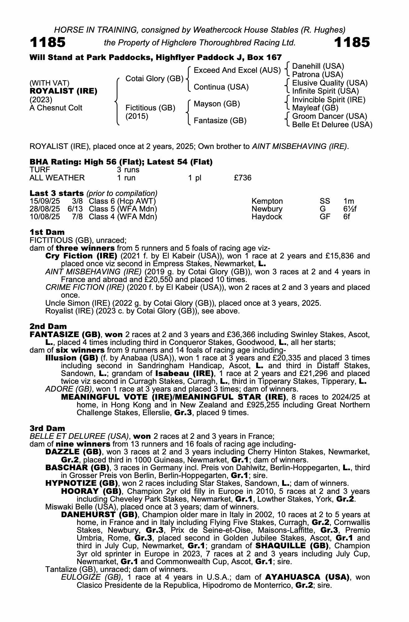 Consignor: Weathercock House Stables (R. Hughes)
