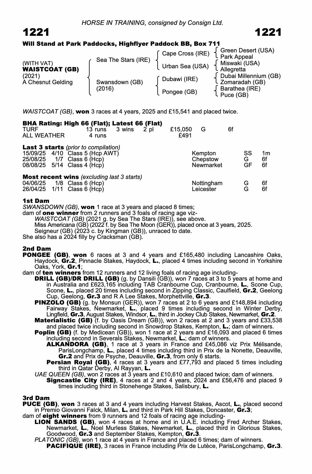 BHA Rating: High 68 (Flat); Latest 68 (Flat)