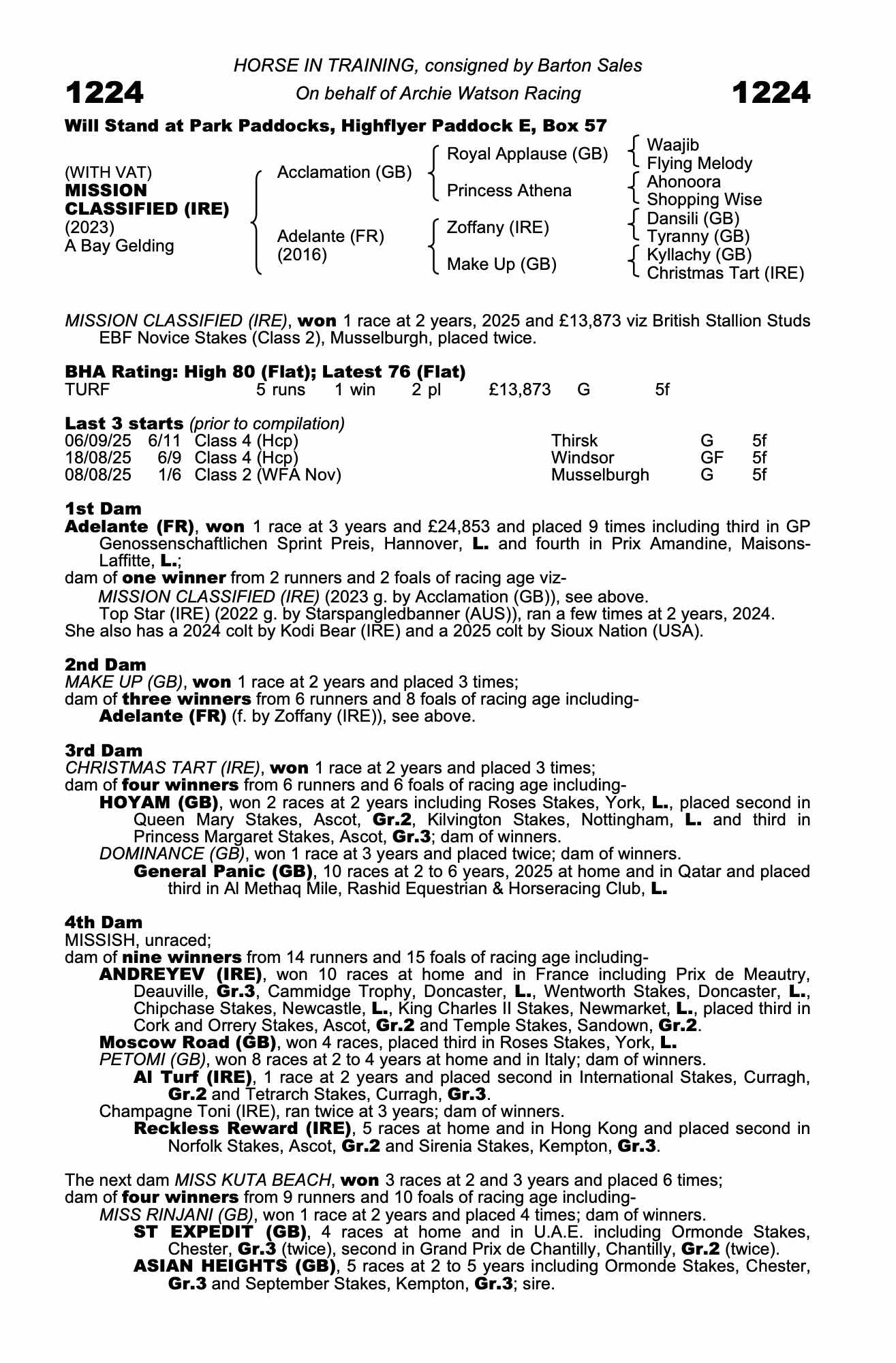 Autumn Horses In Training Sale 2024 lot 1186 Top Star (IRE) (C. by Starspangledbanner (AUS)), Weathercock House Stables (R. Hughes)=>Graham Thorner 3,500 gns