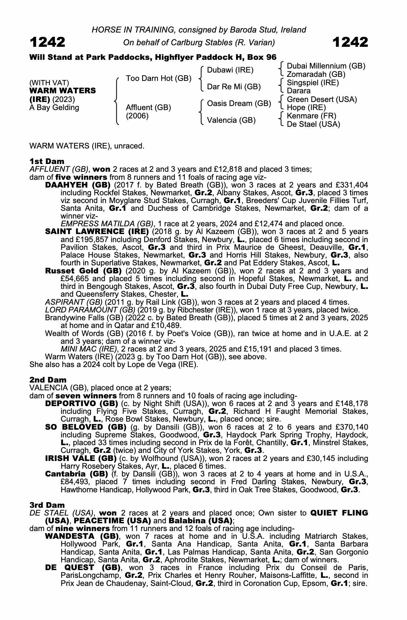 Autumn Horses In Training Sale 2024 lot 1280 Brandywine Falls (GB) (C. by Bated Breath (GB)), Baroda Stud, Ireland=>Al Tareq Stud 16,000 gns