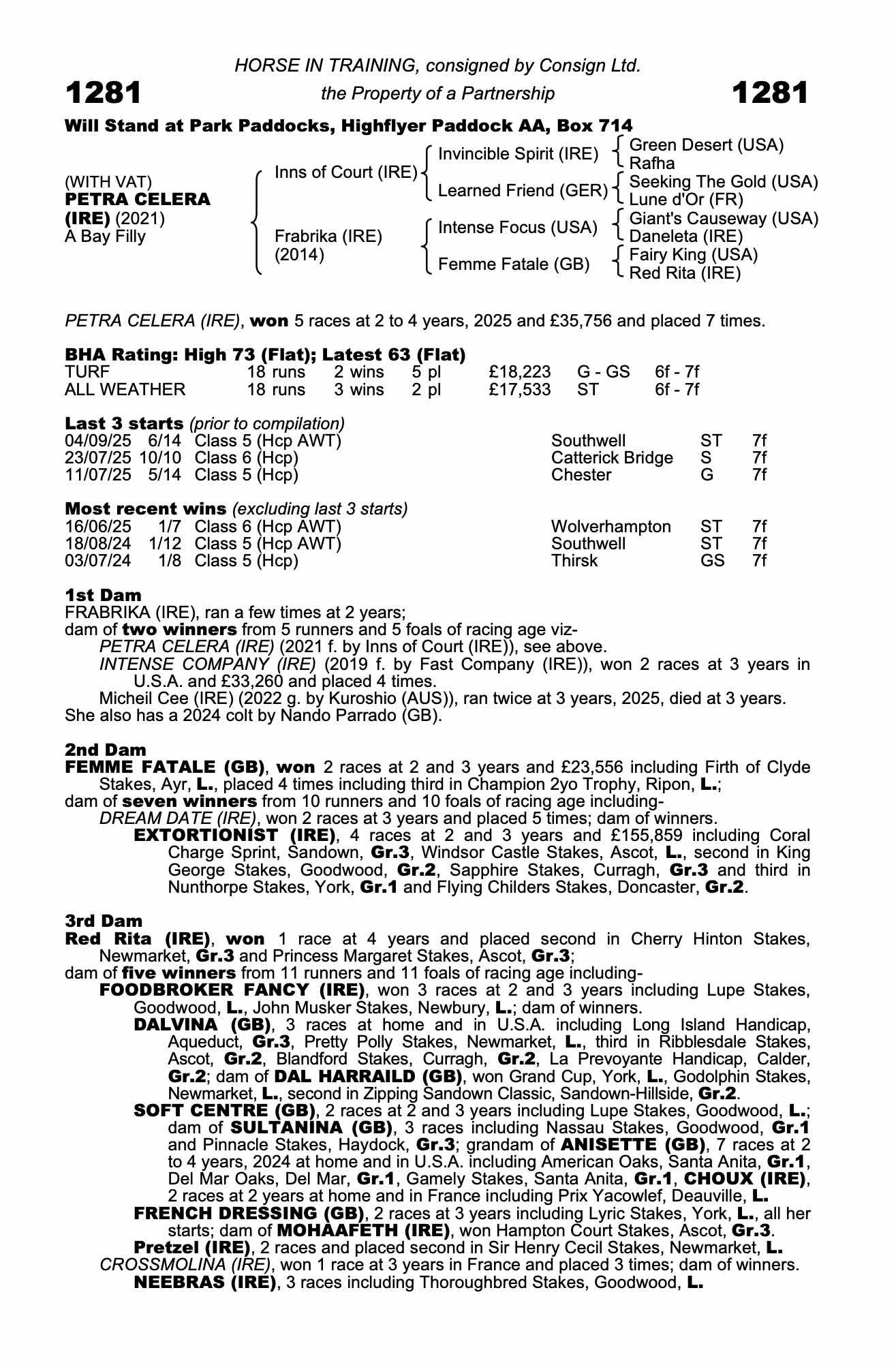 Online Sale - 23rd November 2023 lot 4, Nick Bradley Racing=>Vendor 12,500 gns