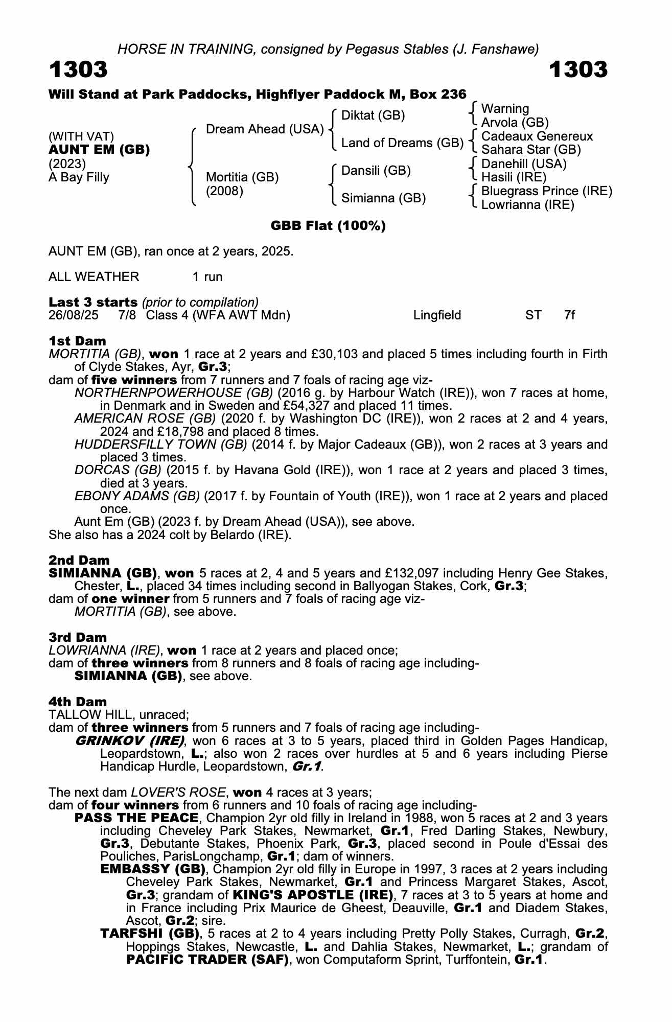 Consignor: Pegasus Stables (J. Fanshawe)