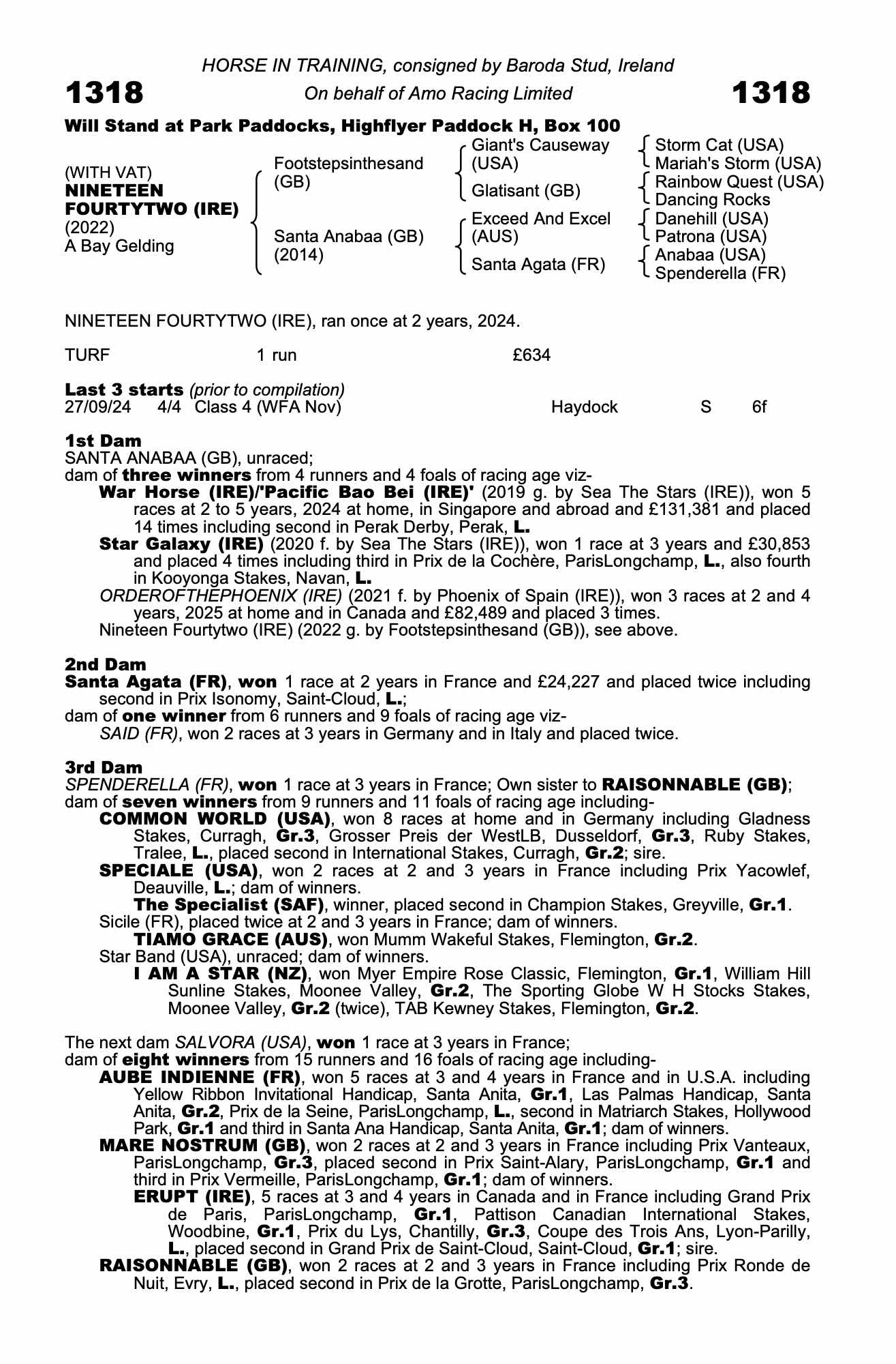 Consignor: Baroda Stud, Ireland