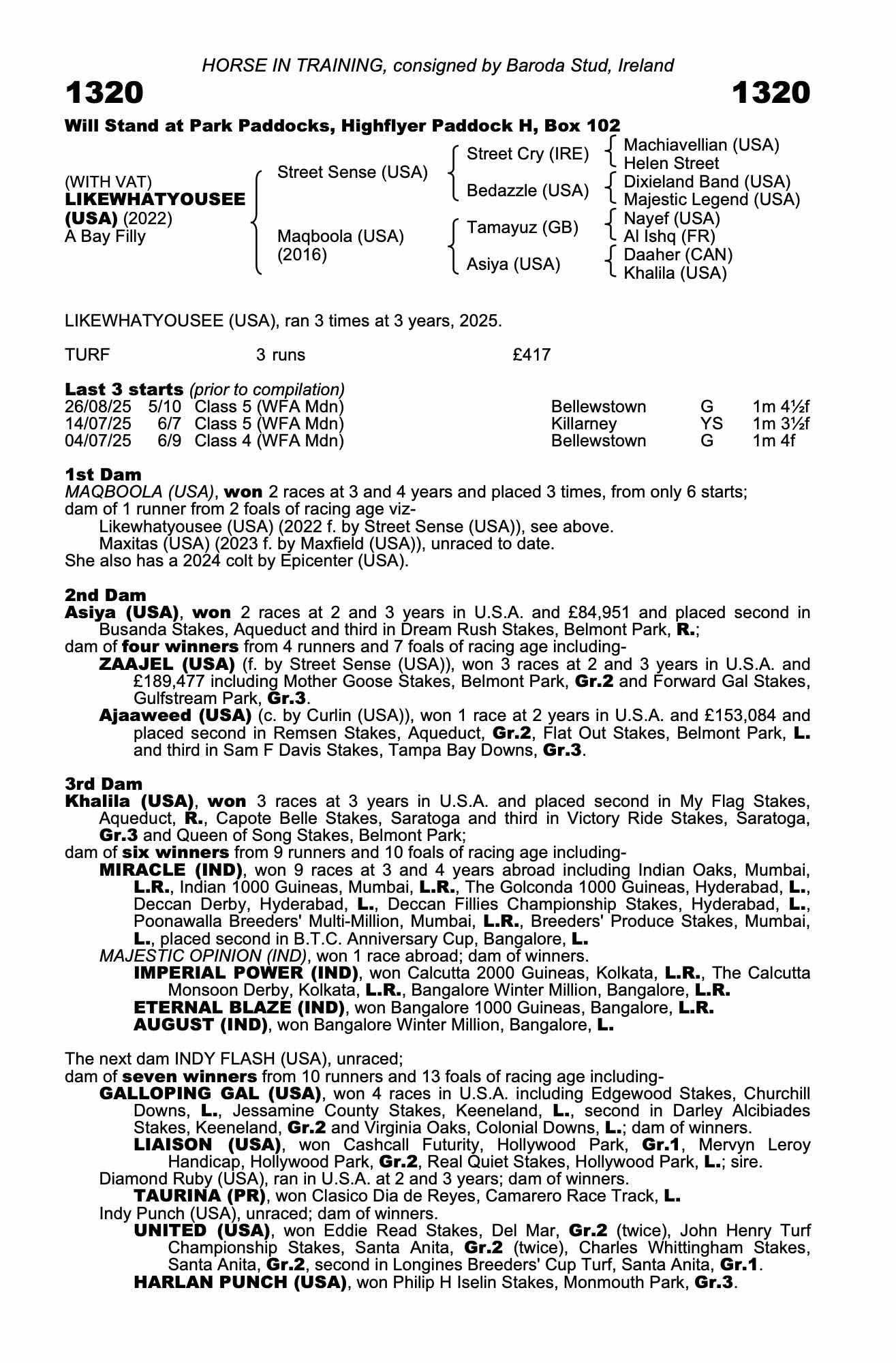 LIKEWHATYOUSEE (USA), placed once at 3 years, 2025.