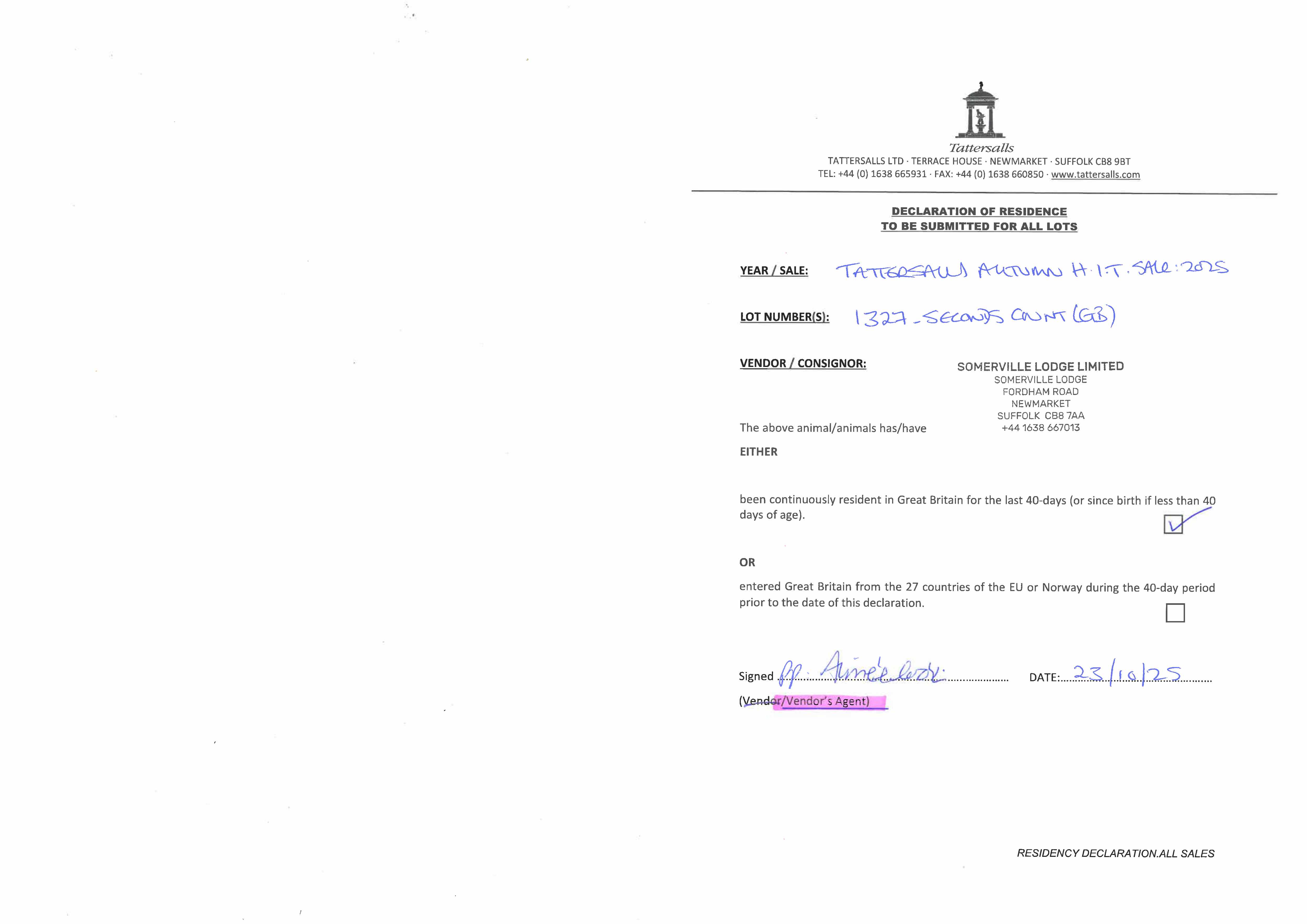 Consignor: Somerville Lodge Ltd. (W. Haggas), Agent
