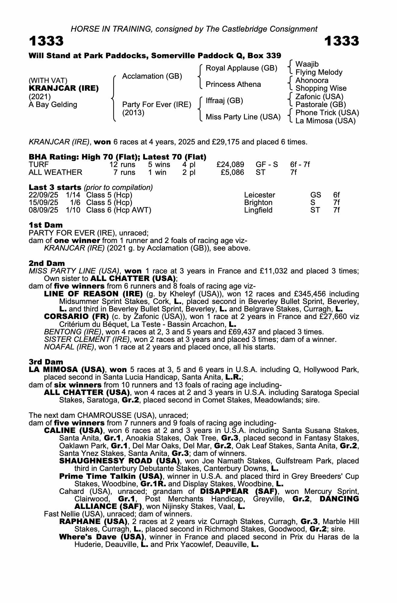 BHA Rating: High 79 (Flat); Latest 79 (Flat)