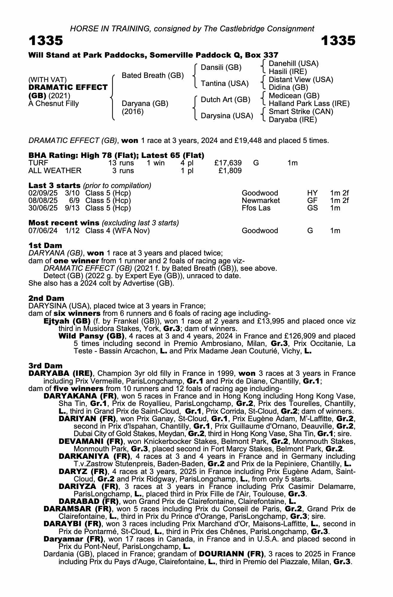 Under 3rd dam, DARYAKANA (FR), dam of: DARYZ (FR), 5 races at 3 years, 2025 in France including Prix de l'Arc de Triomphe, ParisLongchamp, Gr.1.