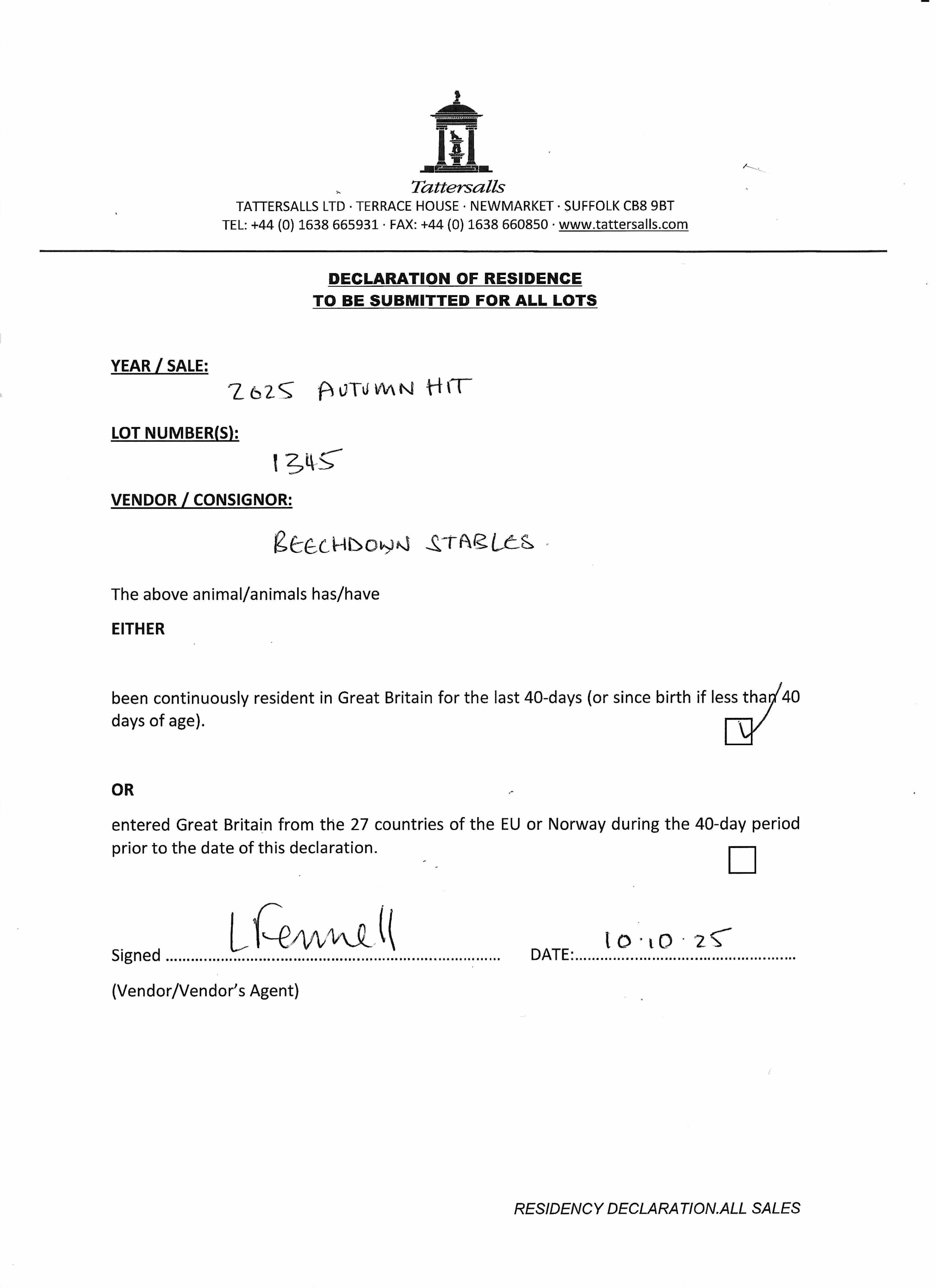 Consignor: Beechdown Farm Stables (C. Cox)