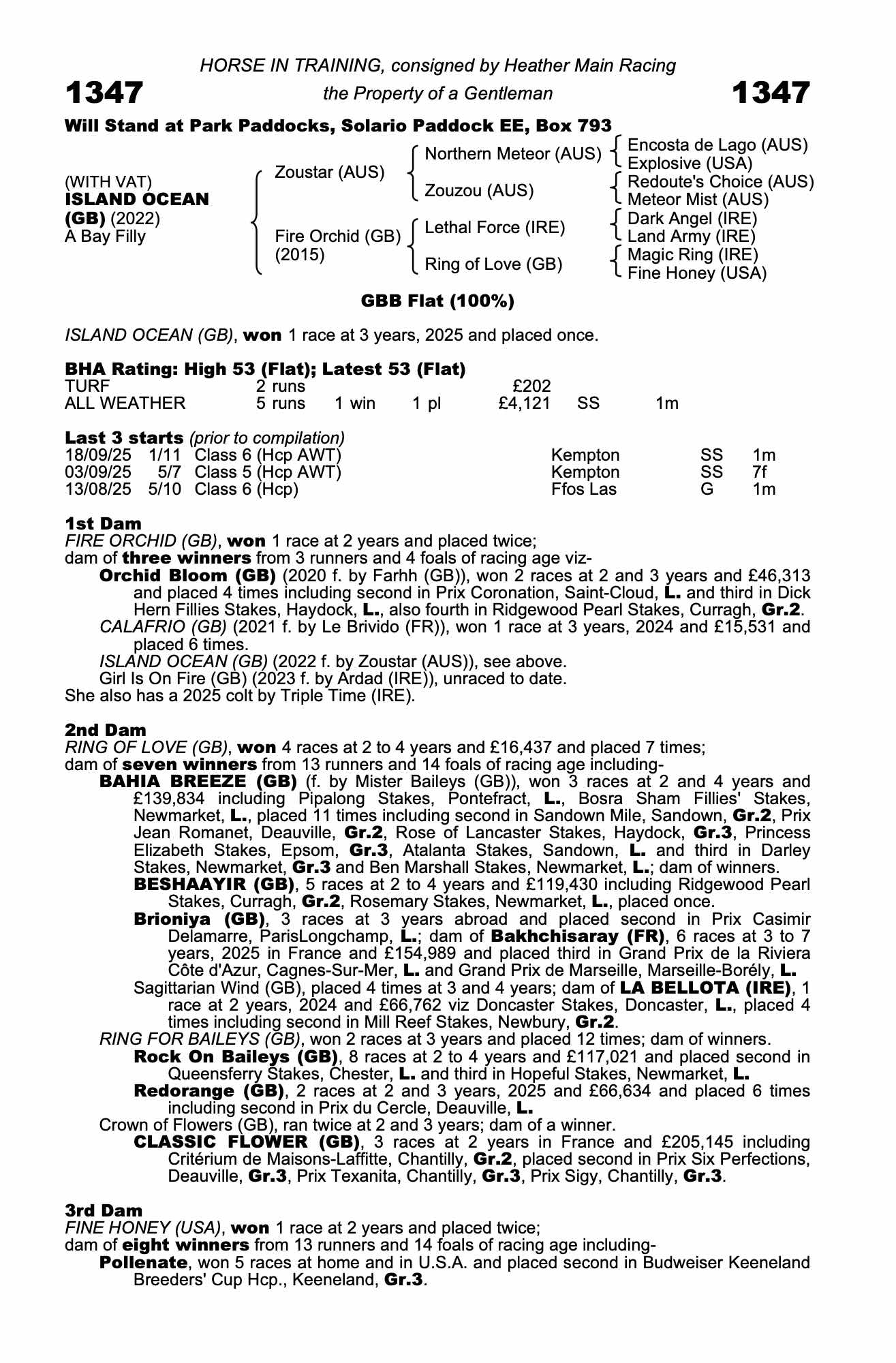 Consignor: Heather Main Racing