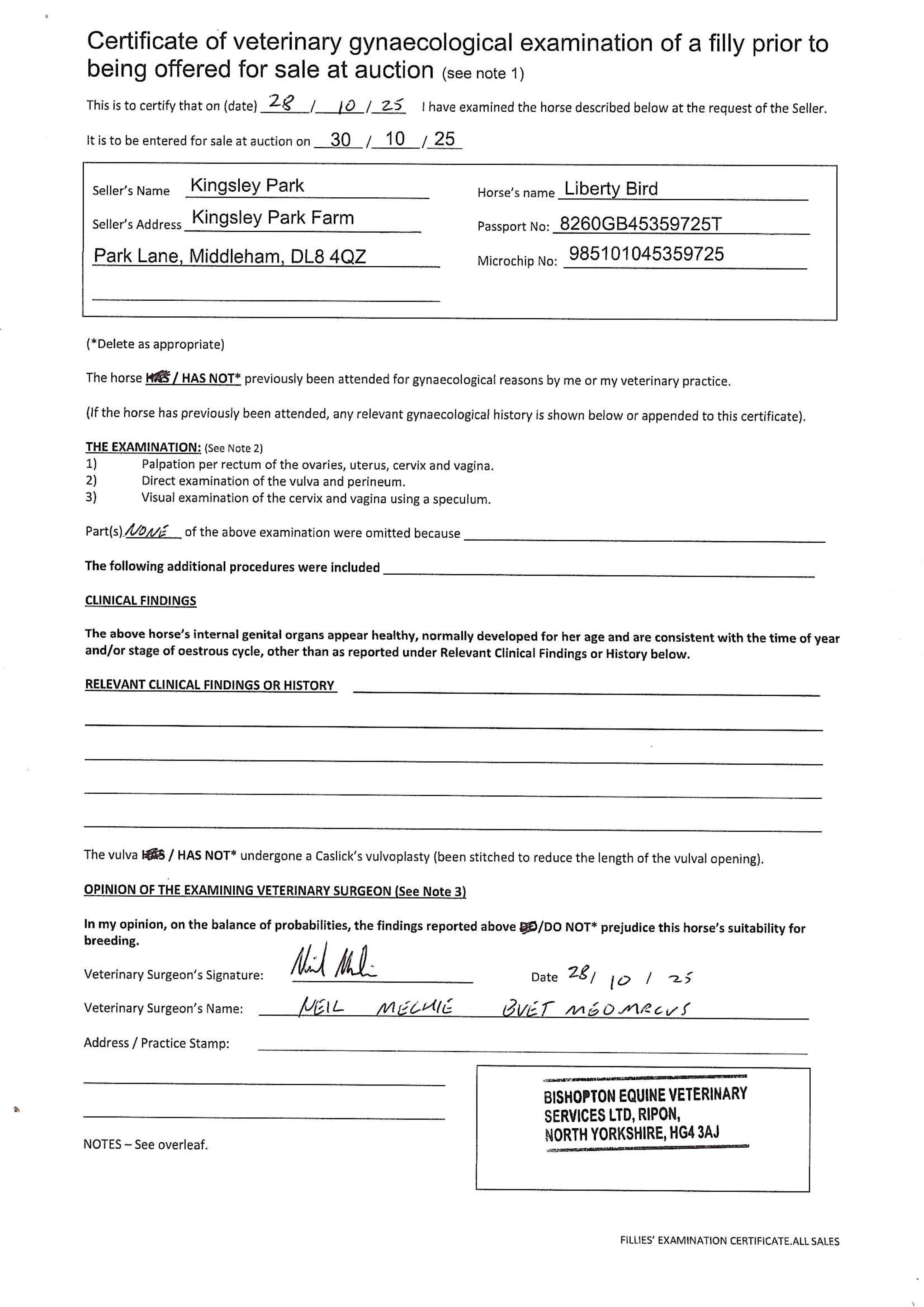 December Foal Sale 2025 lot 583 F. by Sergei Prokofiev (CAN) 2025, Silfield Bloodstock=>RMM Bloodstock/ Valentine Ledden 7,000 gns