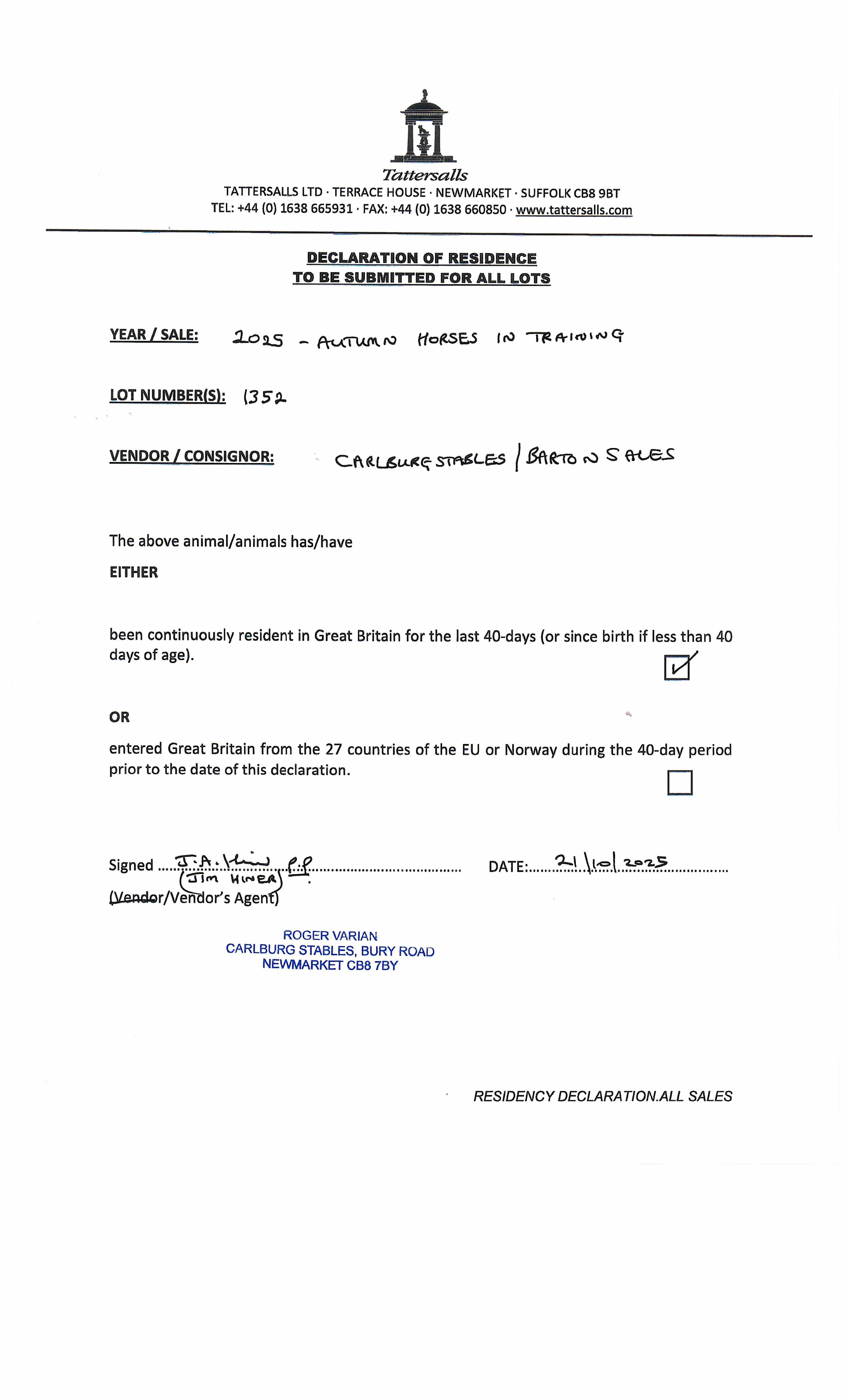 Official Veterinarian Declaration