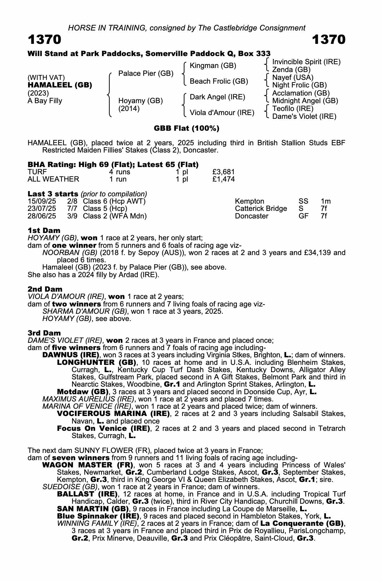 December Mare Sale 2025 lot 1928 Noorban (GB) (M. by Sepoy (AUS)), New England Stud=>Vendor 7,000 gns