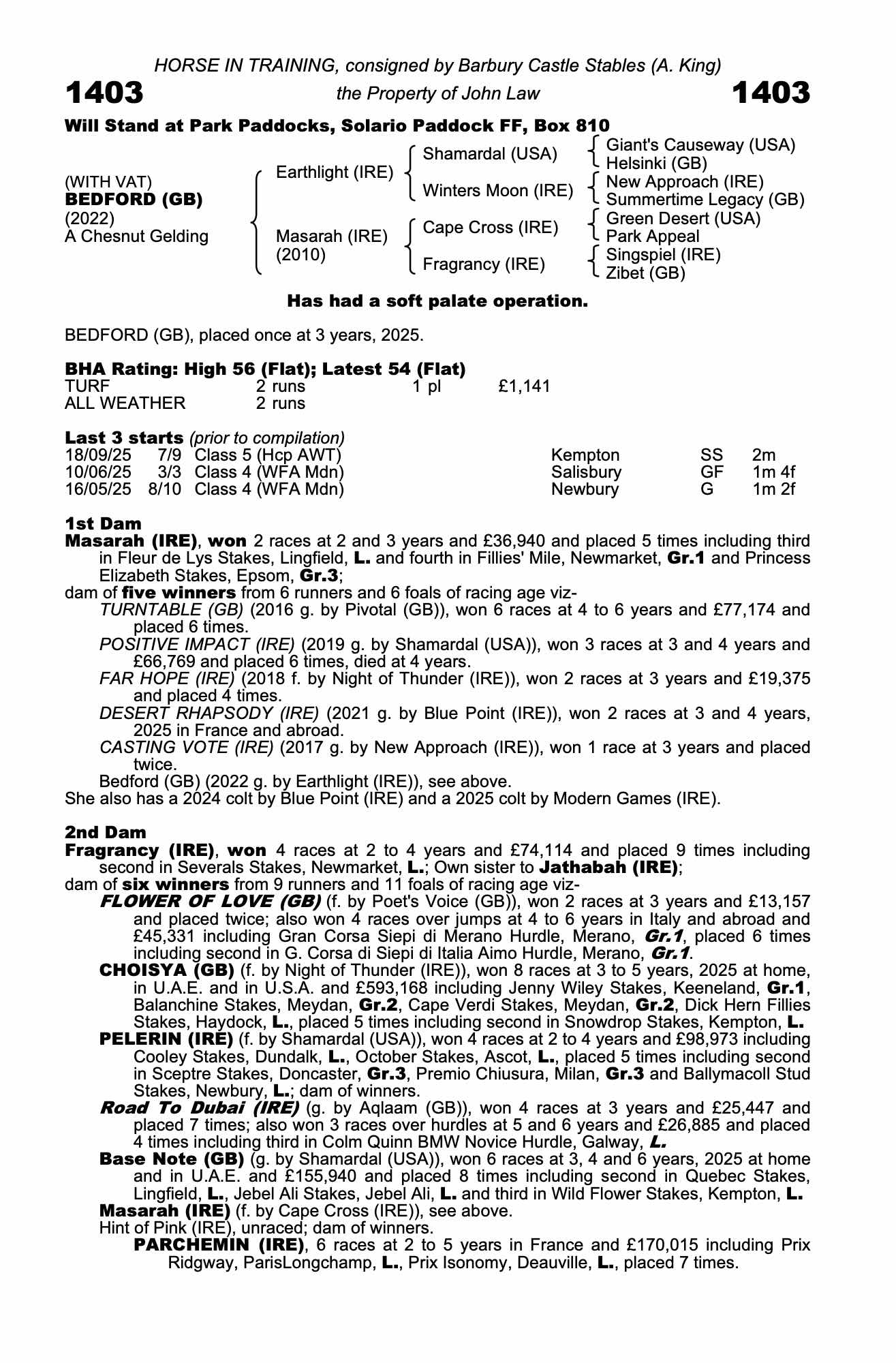 Consignor: Barbury Castle Stables (A. King)