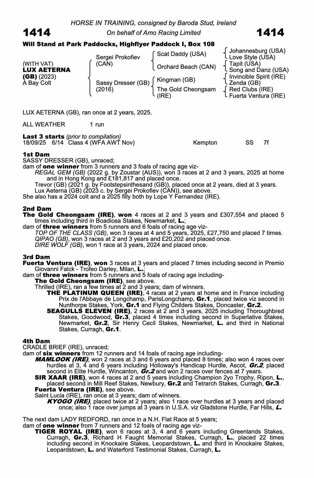 Consignor: Baroda Stud, Ireland