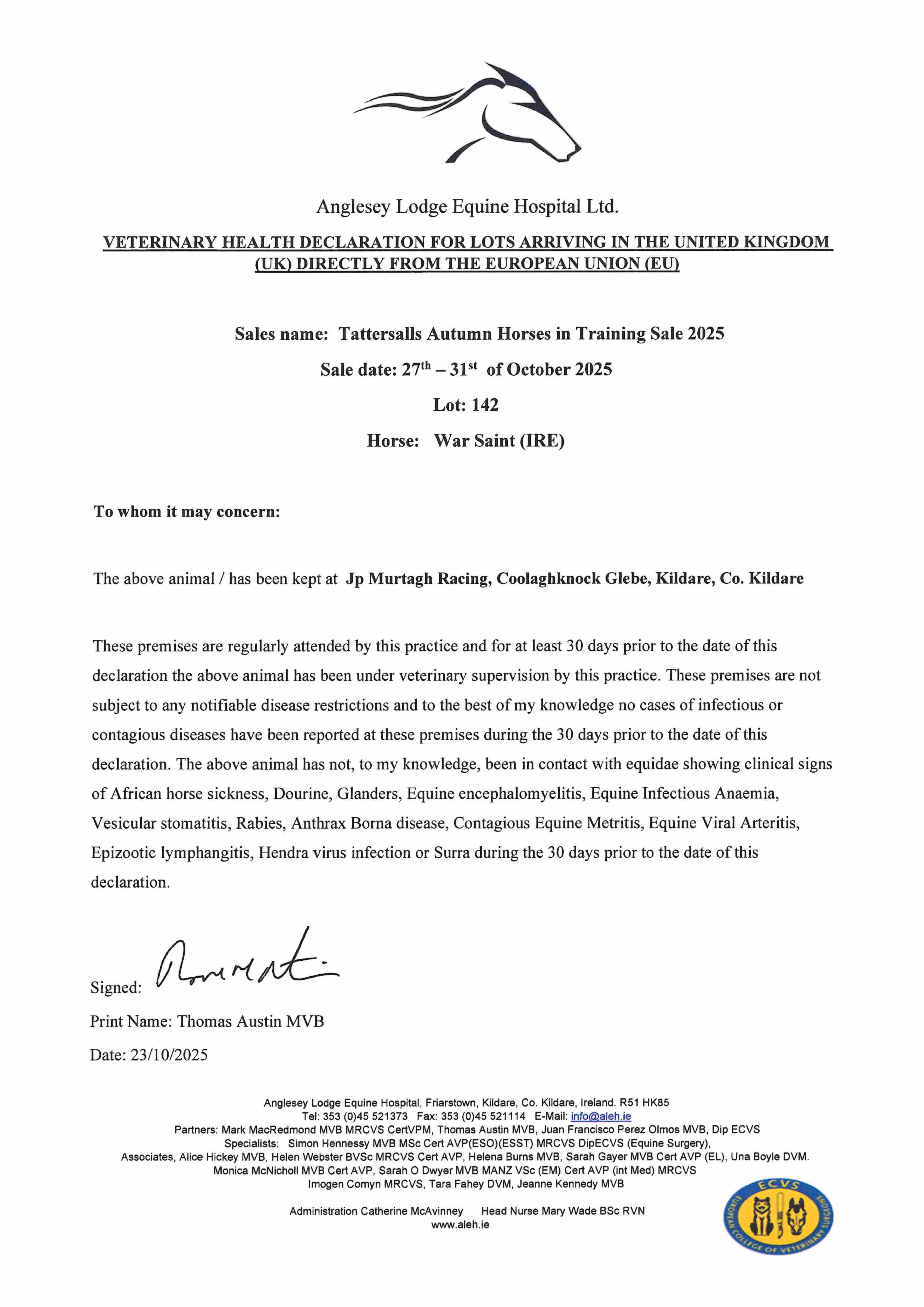 July Sale 2025 lot 147 Ventress (IRE) (F. by American Pharoah (USA)), The Castlebridge Consignment=>Edgar Byrne / C Vang 1,000 gns