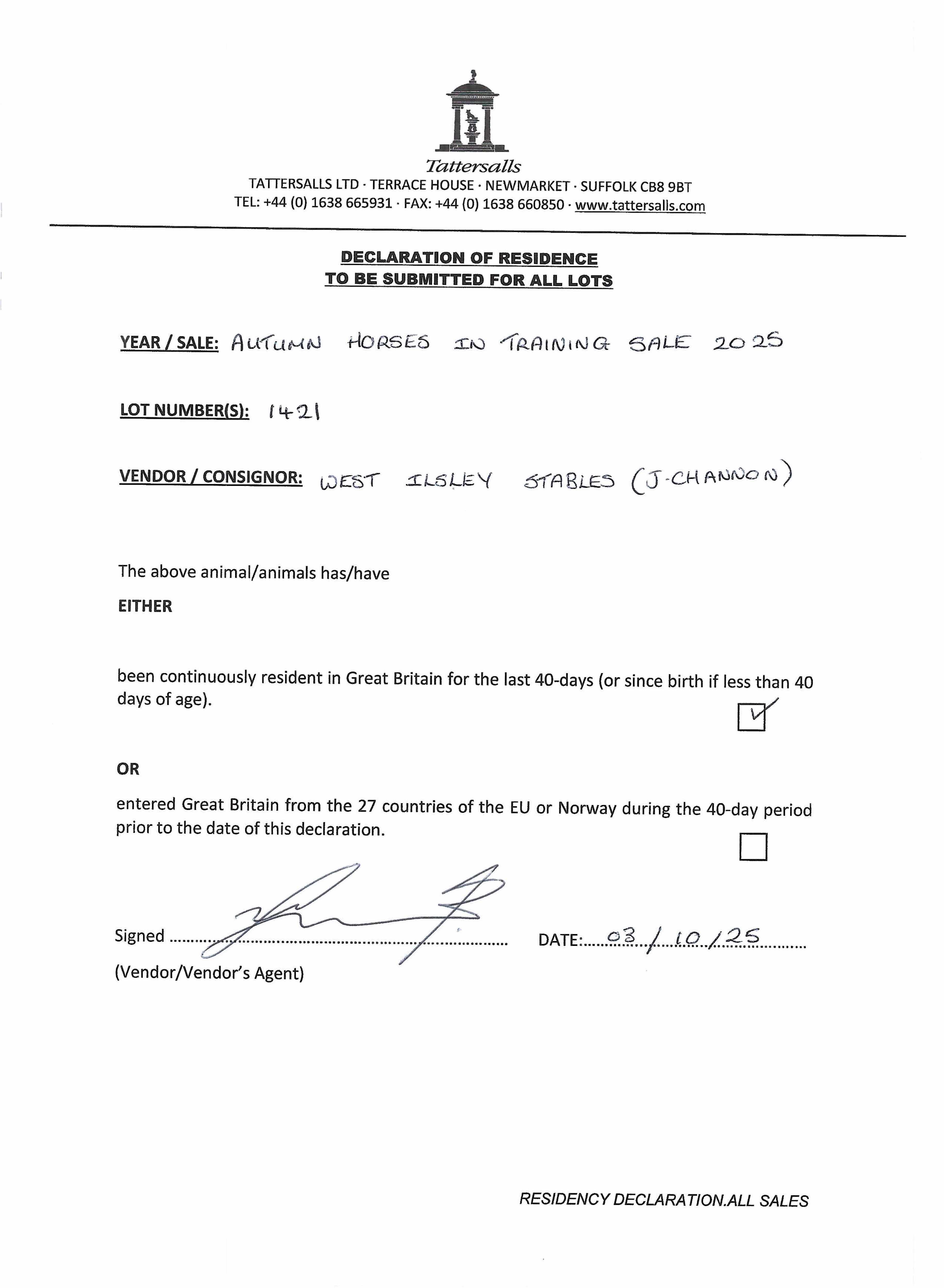 Somerville Yearling Sale 2024 lot 98 F. by Churchill (IRE) 2023, Greyridge Bloodstock=>Diamond Stables 11,000 gns
