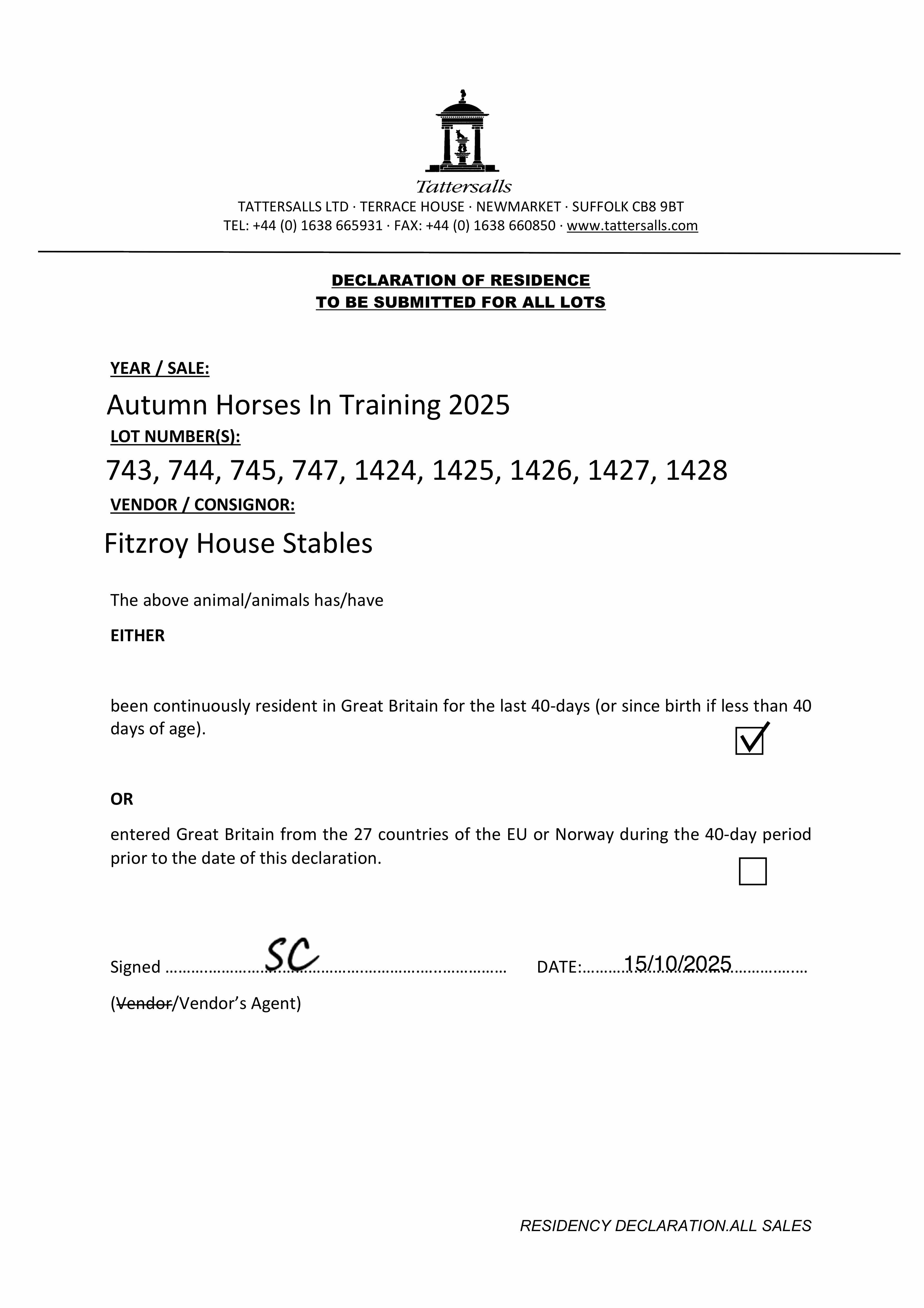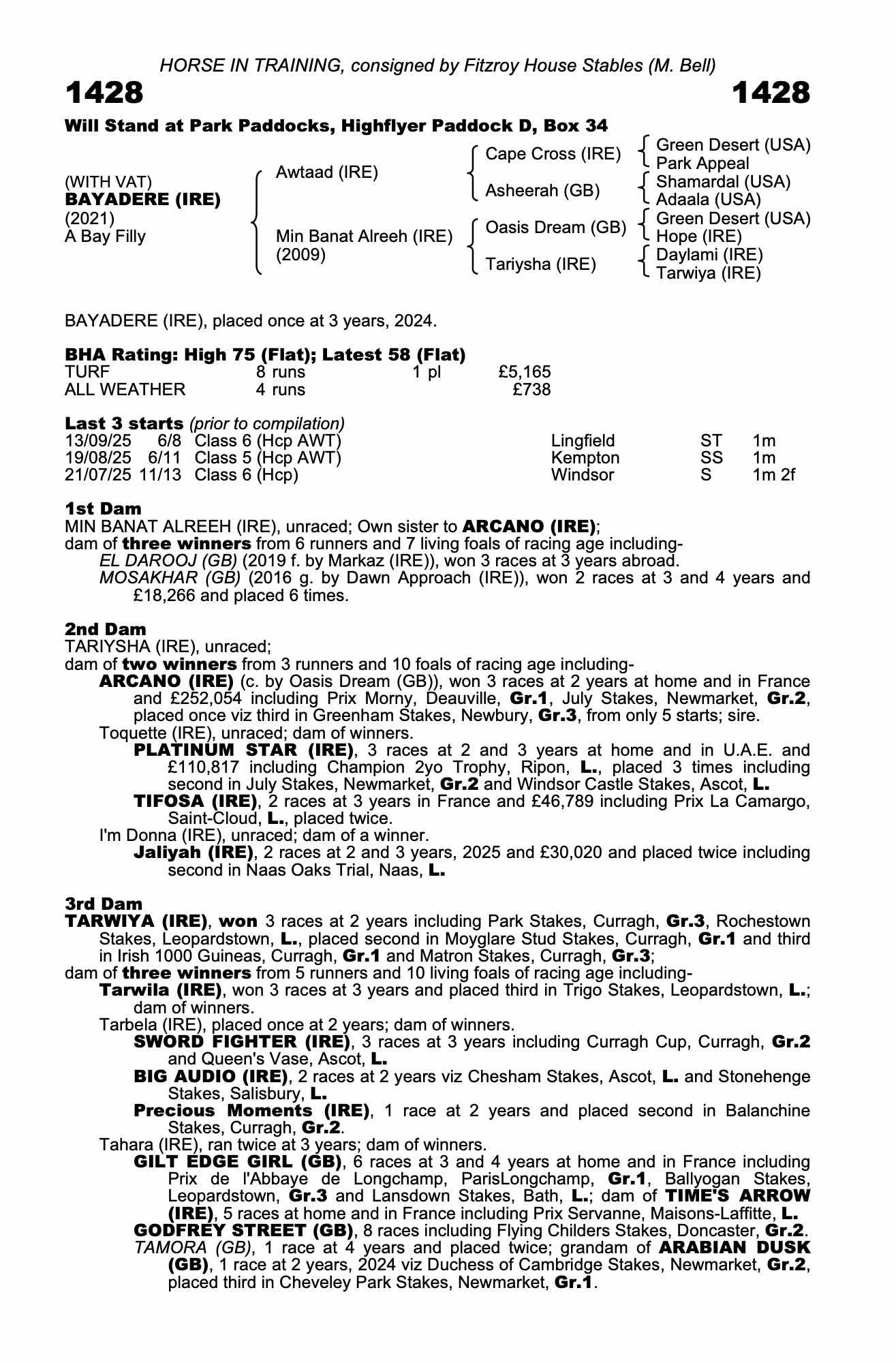 Consignor: Fitzroy House Stables (M. Bell)