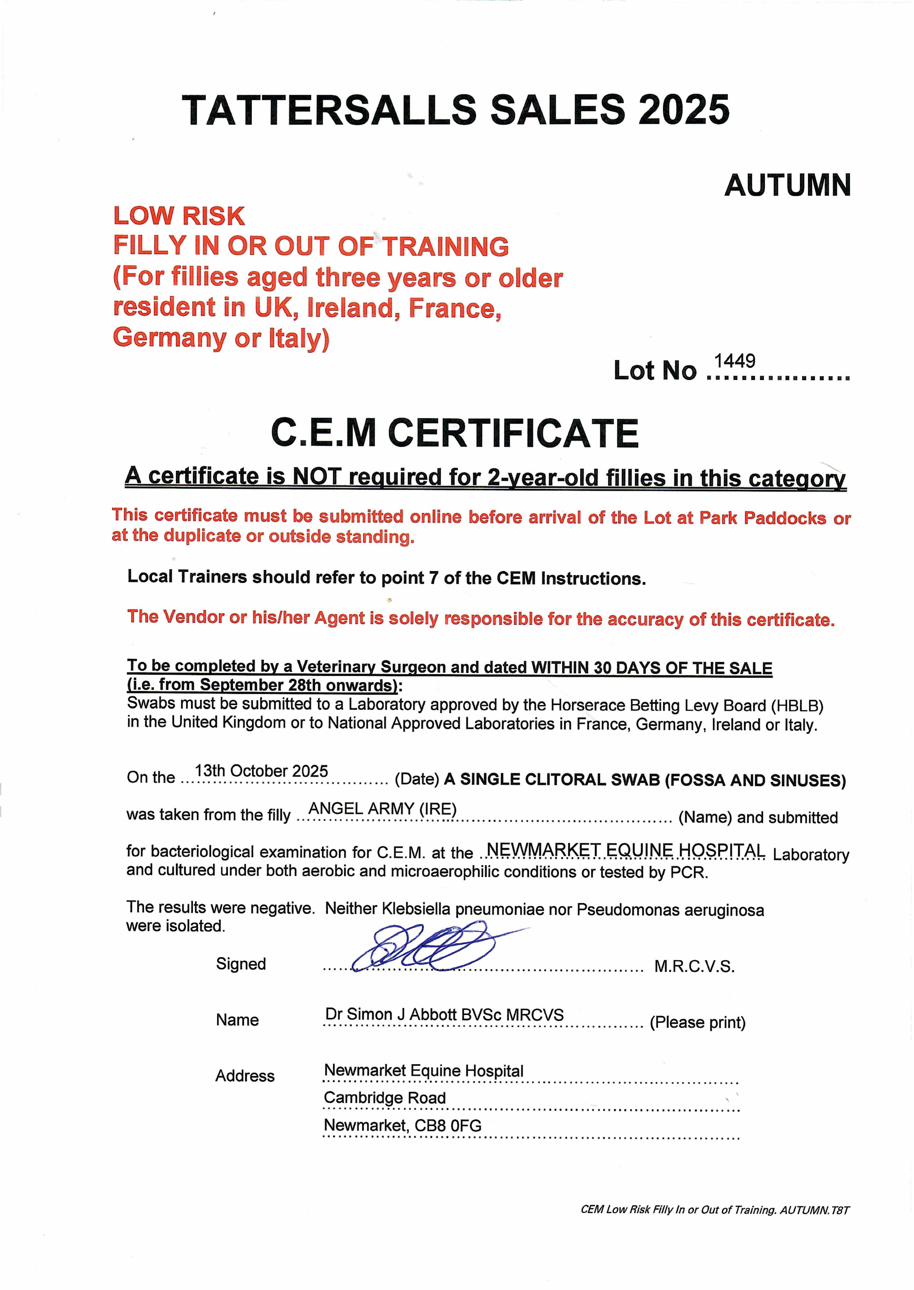 Consignor: Jamesfield Stables (J. Tate)