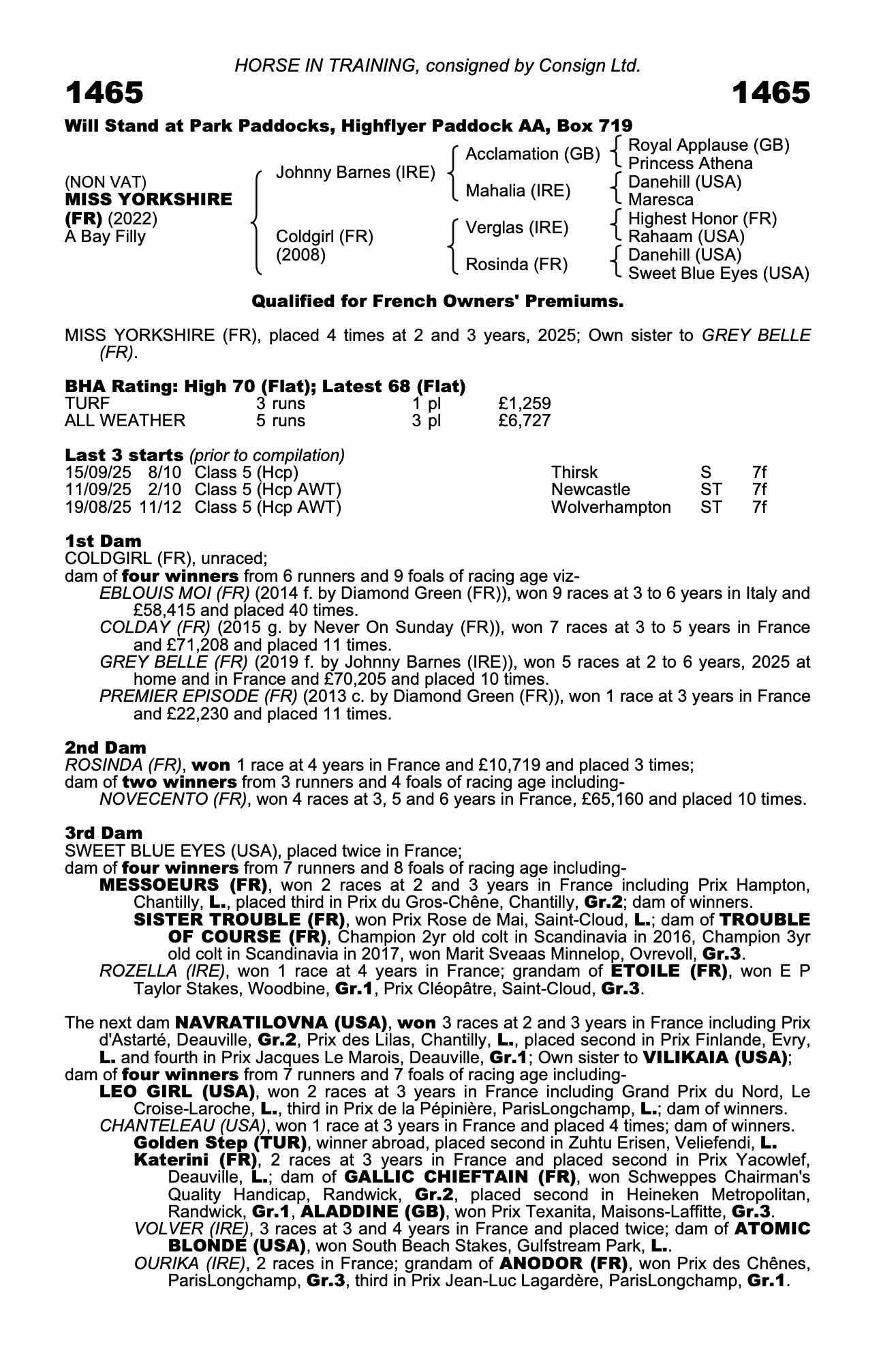 MISS YORKSHIRE (FR), placed 5 times at 2 and 3 years, 2025 and £10,442.