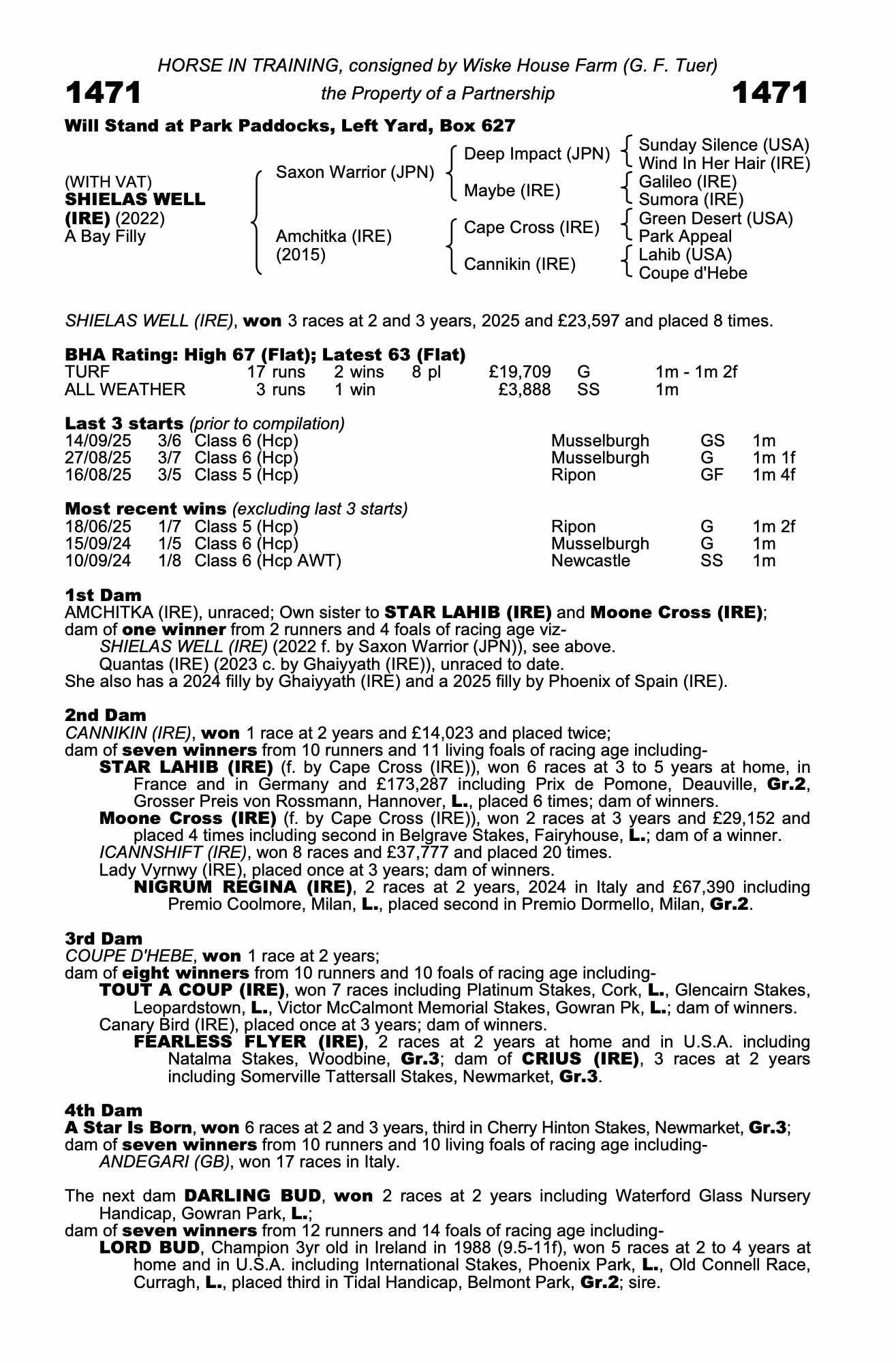 October Yearling Sale, Book 2 2021 lot 1167 F. by Cracksman (GB) 2020, Sherbourne Lodge, Ireland=>EAM Bloodstock 12,000 gns