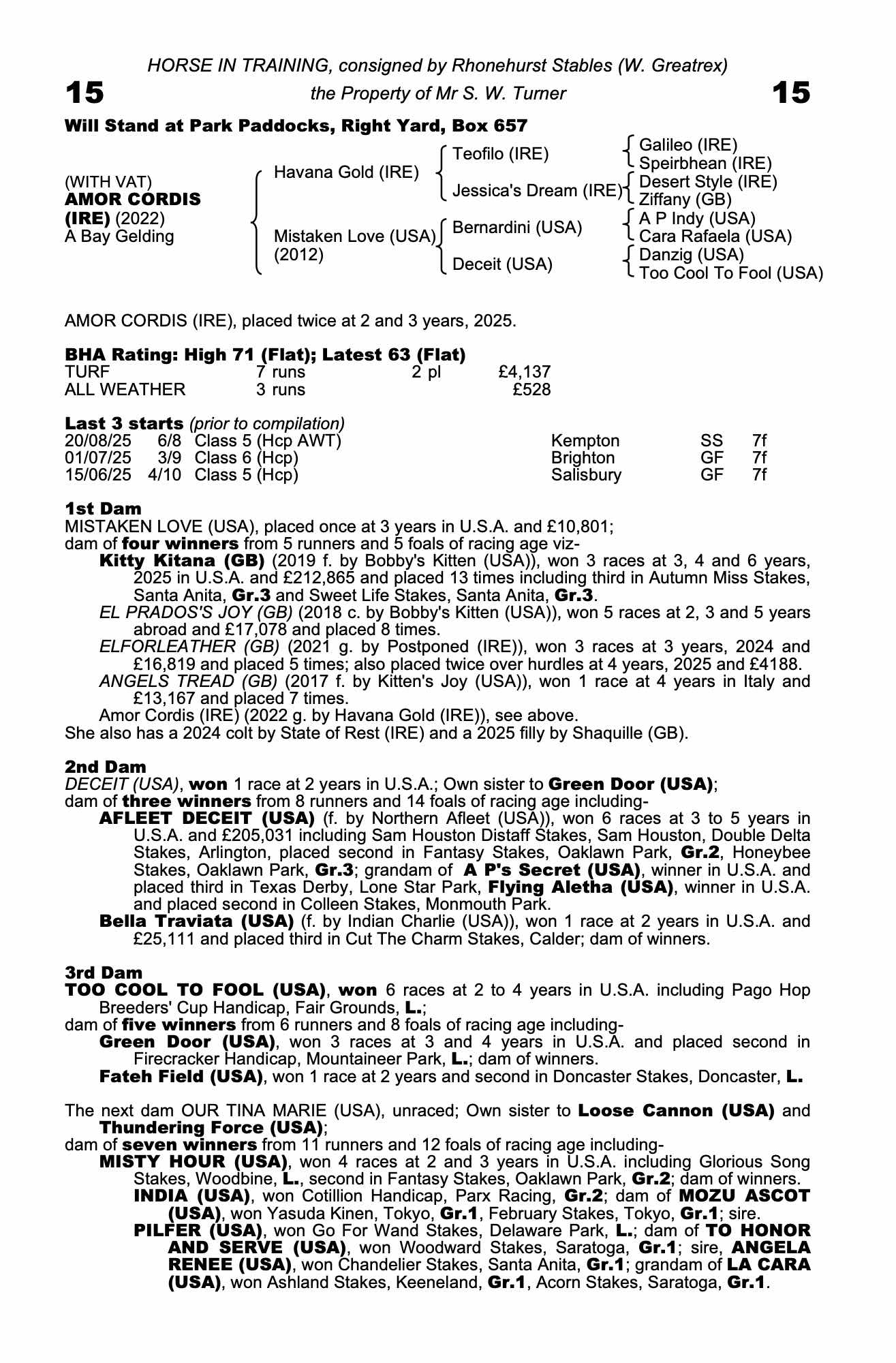 Consignor: Rhonehurst Stables (W. Greatrex)